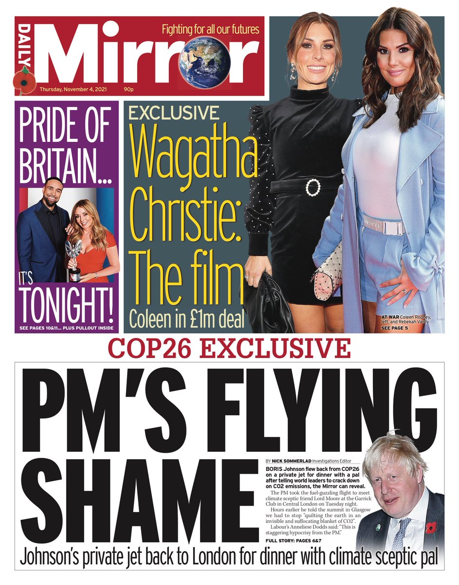 Boris Johnson flew back from the COP26 climate summit on a private jet for dinner with a friend, the Daily Mirror reveals.