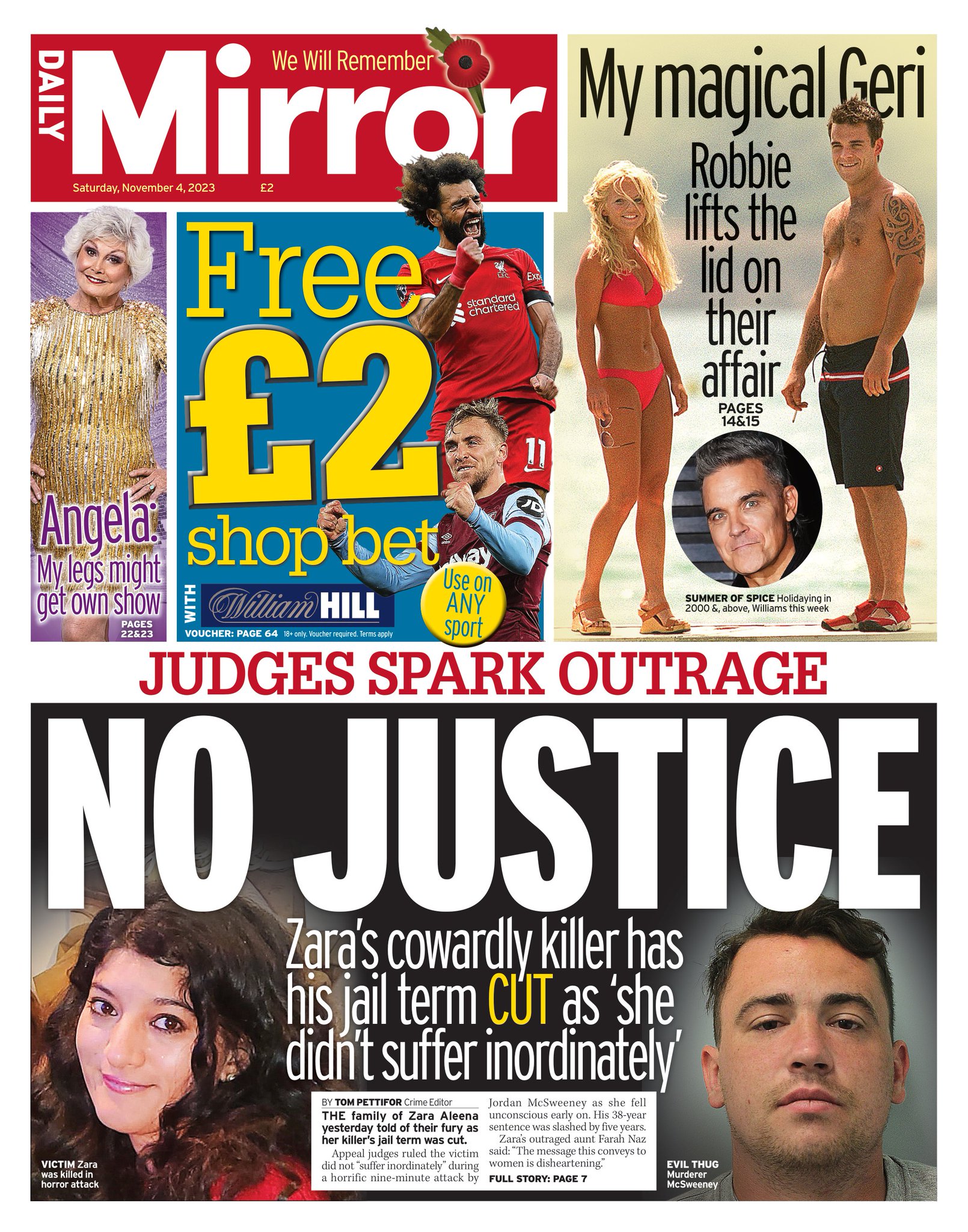 The Daily Mirror reports on the reduction of Jordan McSweeney’s prison sentence, the murderer of Zara Aleena.