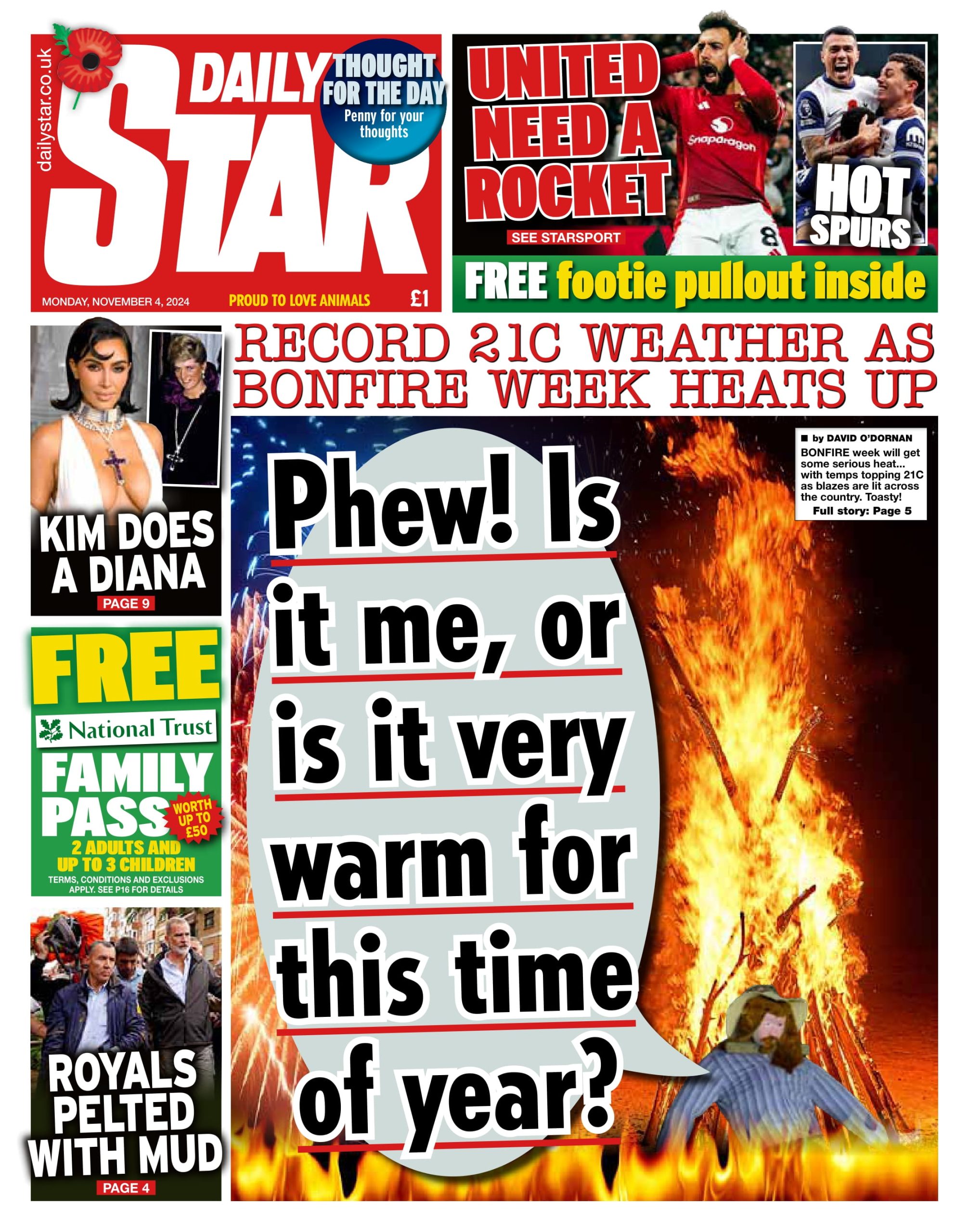 The Daily Star highlights an unusually warm Bonfire Week, with temperatures expected to reach a record-breaking 21°C across the UK, sparking surprise at the unseasonably high temperatures for November.