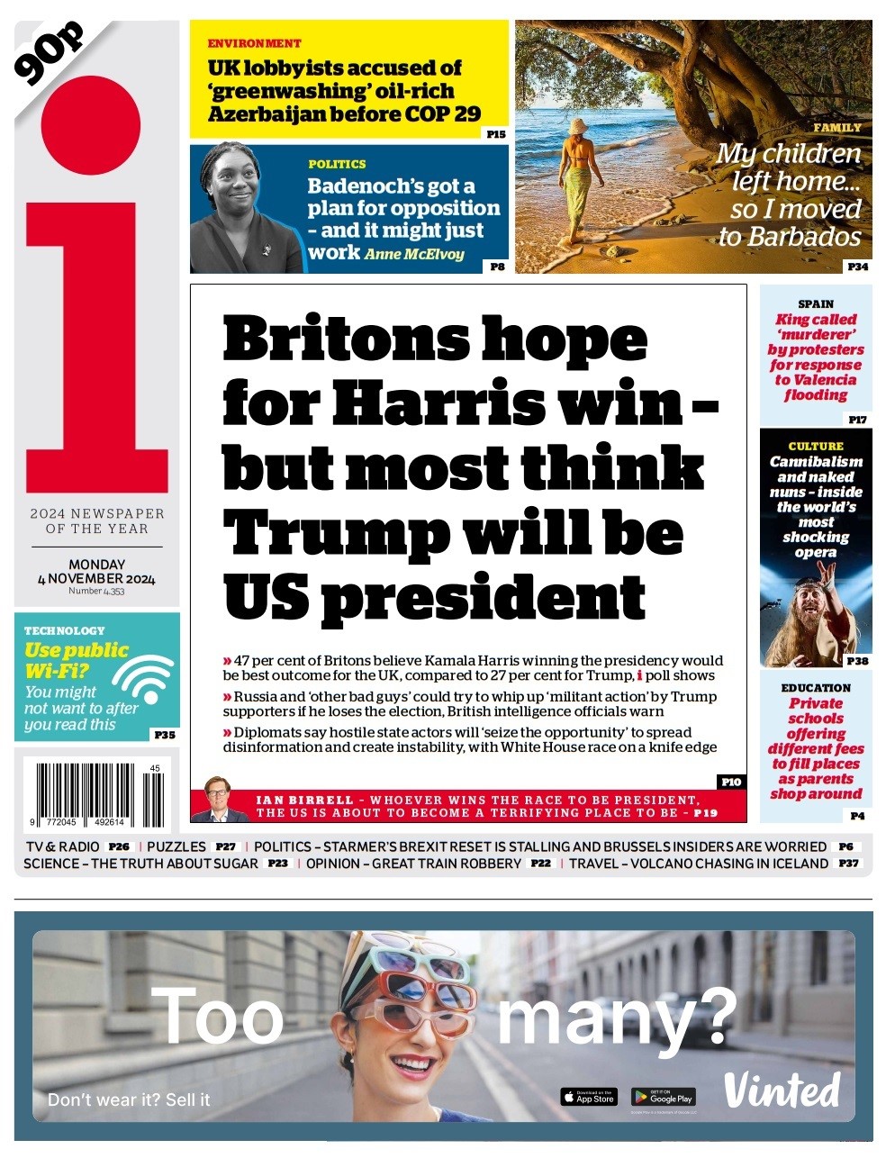 A poll shows that 47 percent of Britons believe a presidential win by Kamala Harris would be more beneficial for the UK compared to 27 percent for Donald Trump, while there are concerns about potential instability and disinformation if Trump supporters react strongly to an election loss.