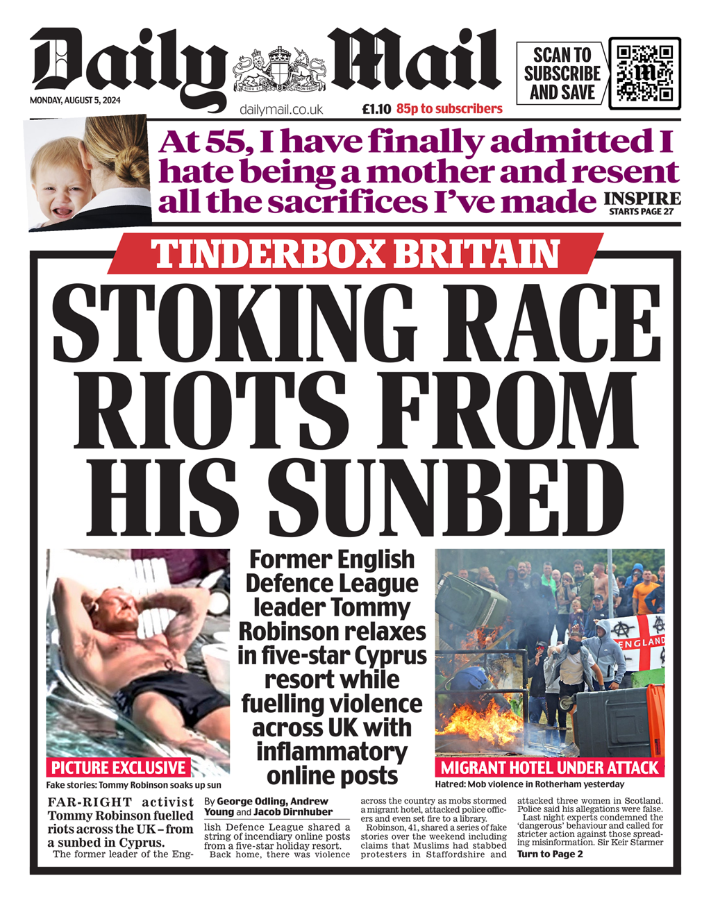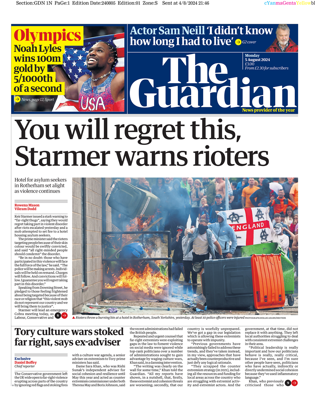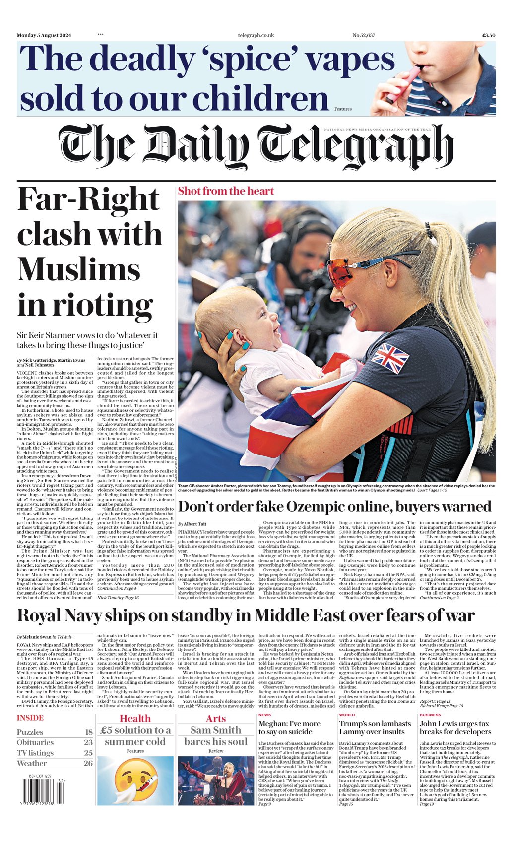 Daily Telegraph Front Page 5th of August 2024