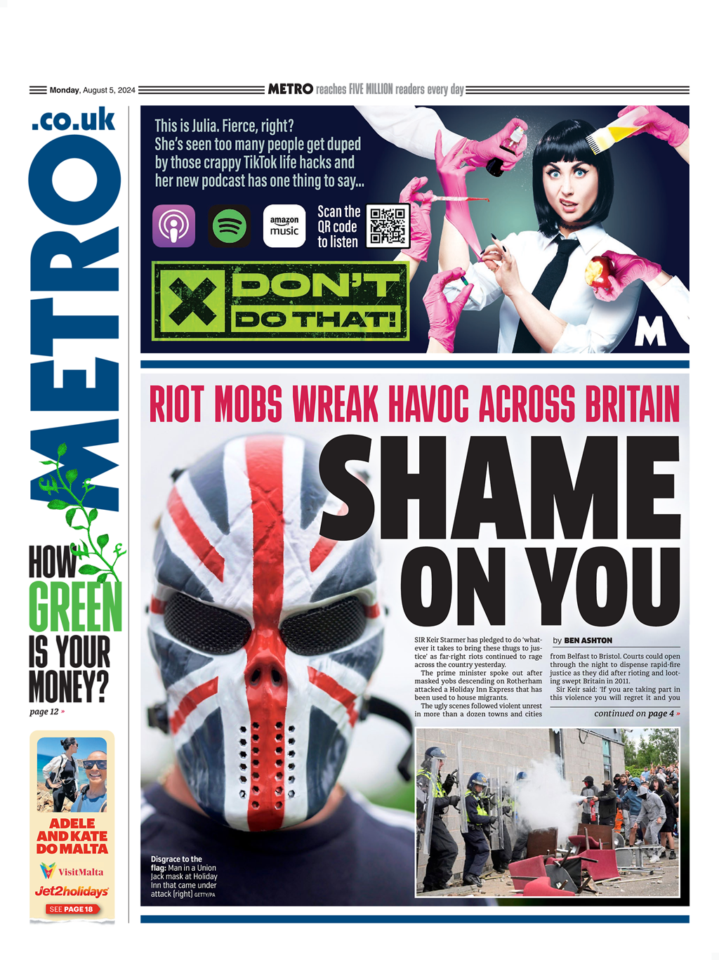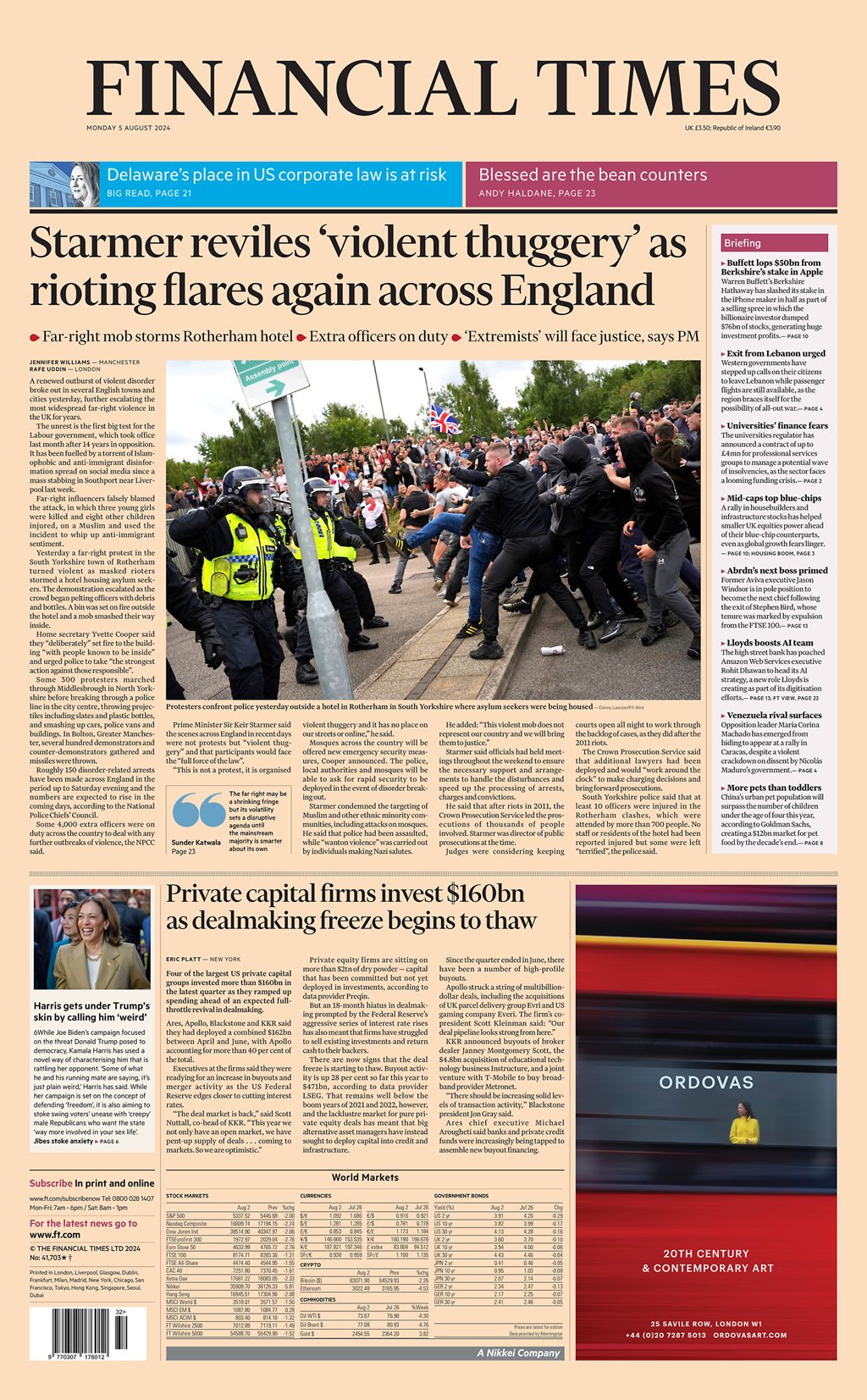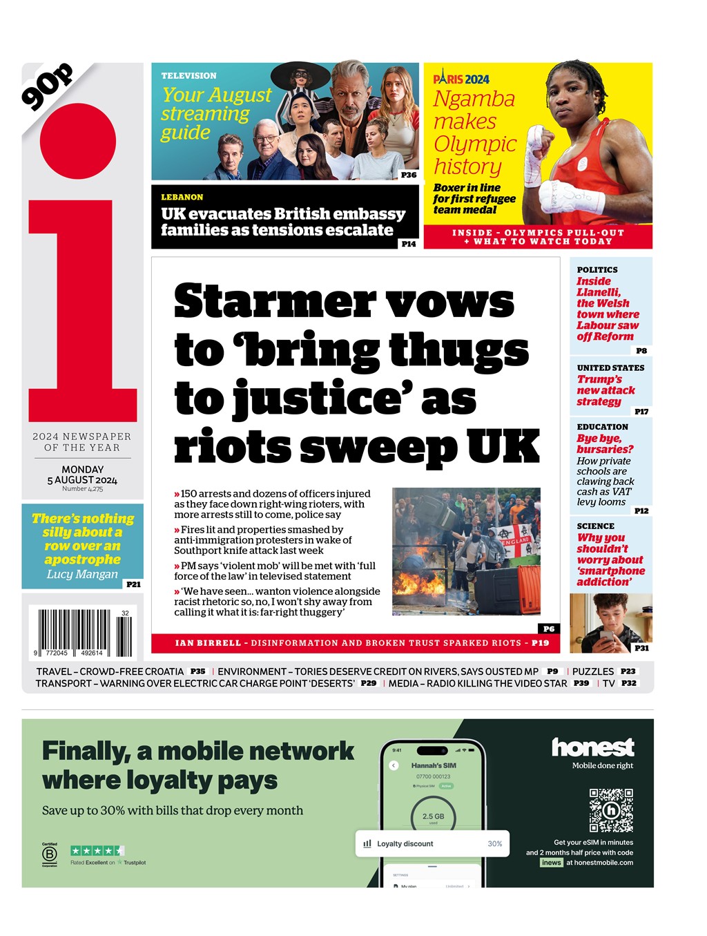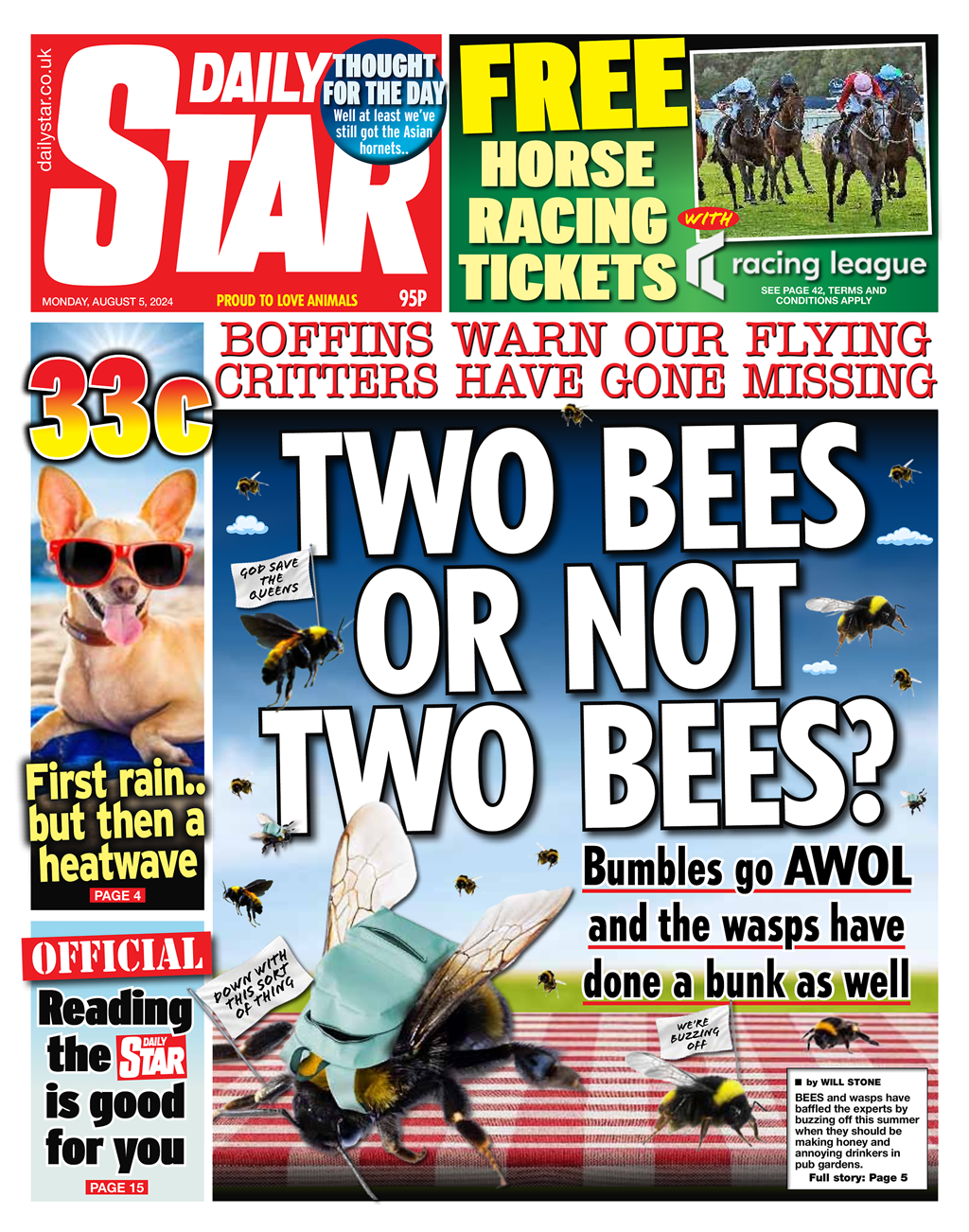 Daily Telegraph Front Page 5th of August 2024
