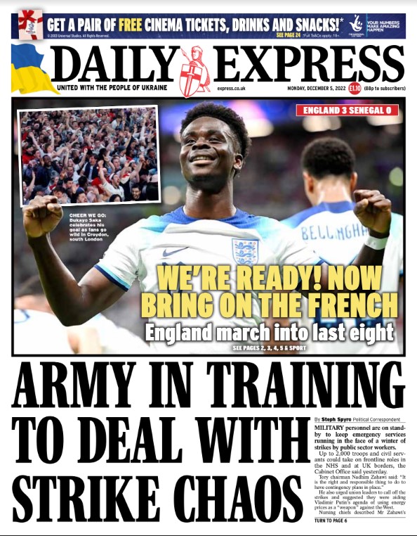 Daily Express Front Page 5th of December 2022