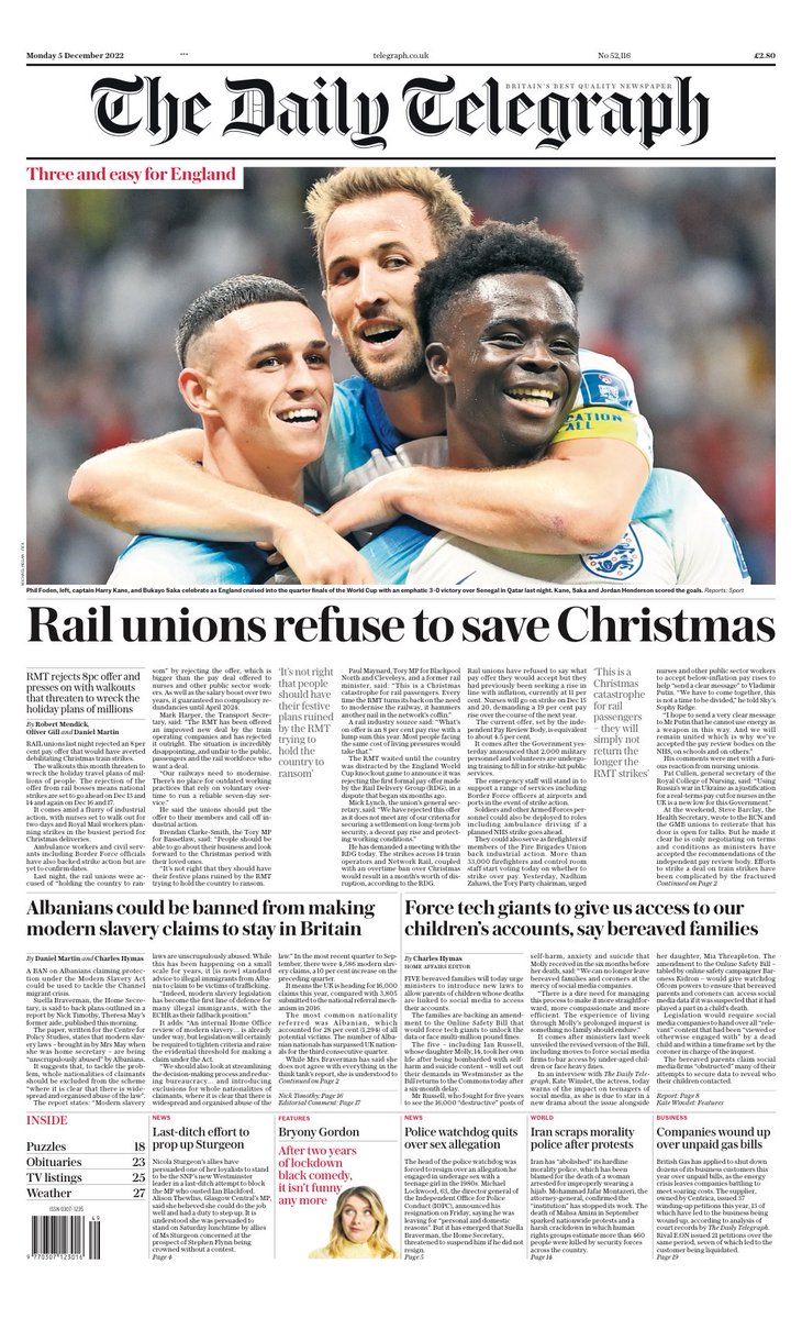 Daily Telegraph Front Page 5th of December 2022