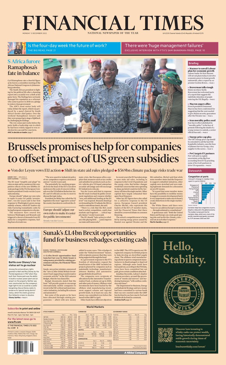 Financial Times Front Page 5th of December 2022