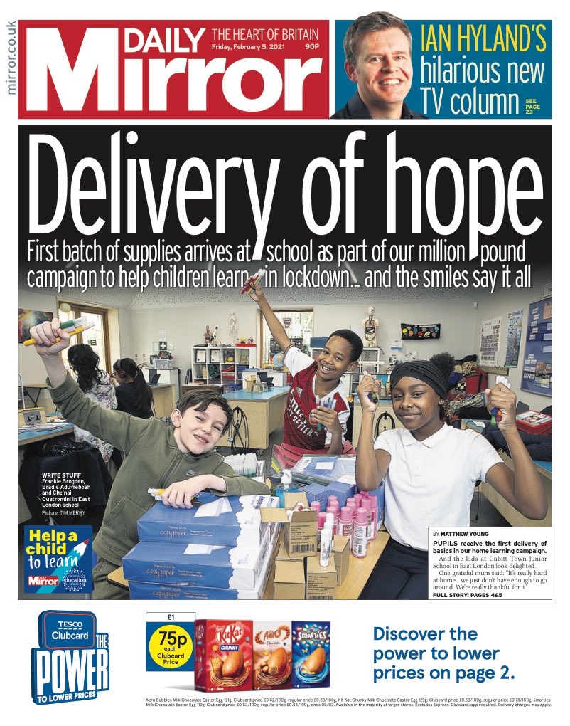 The Daily Mirror has an update on its campaign to supply children with what they need to continue their schooling from home during the lockdown.