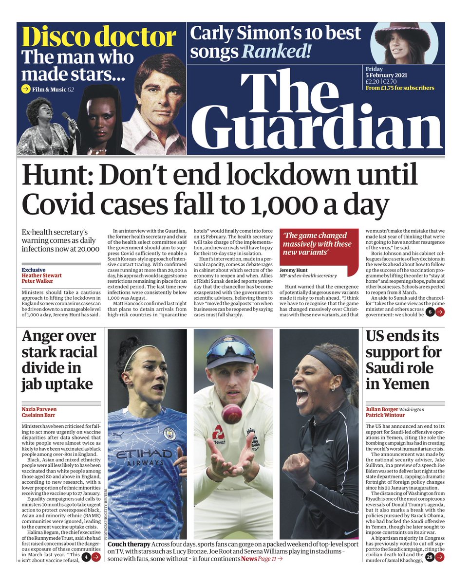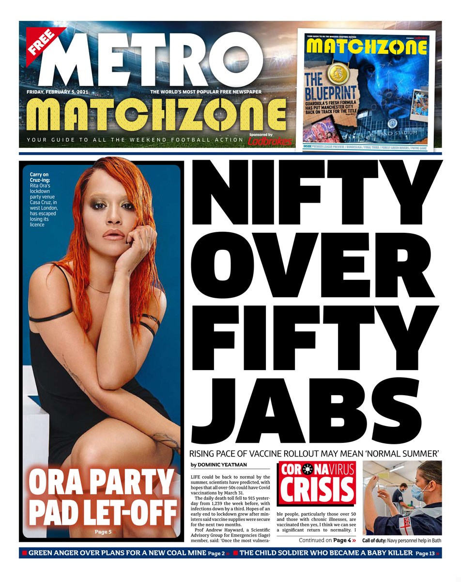 Scientists have predicted life could be back to normal by summer, with hopes that those over 50 could be offered their first coronavirus jab by the end of March – that’s on the front of Metro.