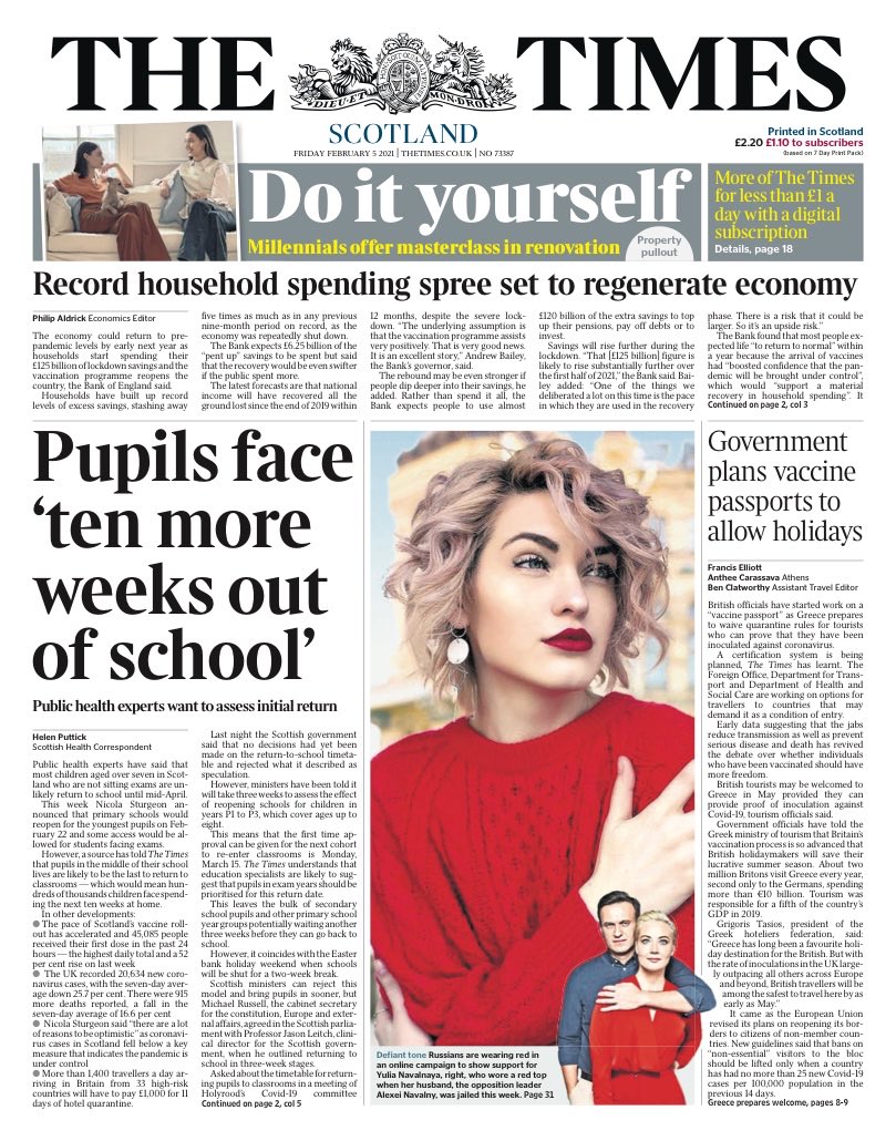 The Daily Express reports on hopes that the speedy vaccine rollout will help fire up the British economy.