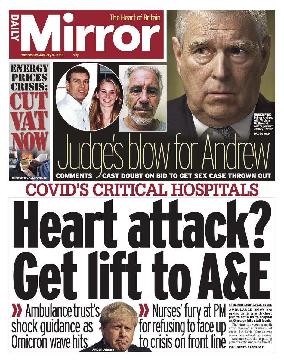 An ambulance trust is asking people with chest pains to get a lift to hospital as COVID absences keep staff off work, the Mirror says.