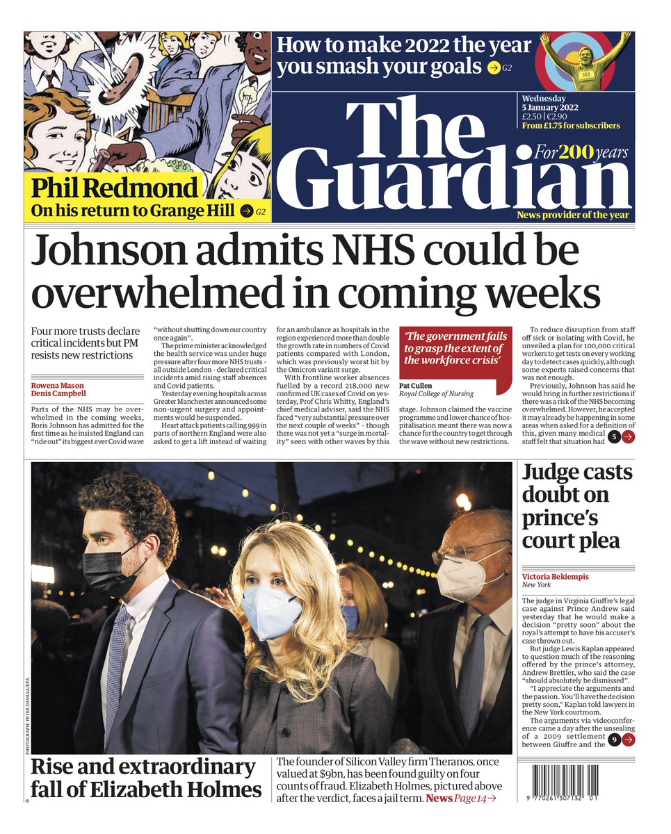 The prime minister admitted parts of the NHS may be overwhelmed due to staff absences and surging COVID cases, says The Guardian.