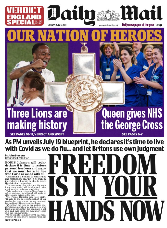 Freedom is in your hands now, the Daily Mail tells readers, as the government prepares to lift coronavirus restrictions later this month.
