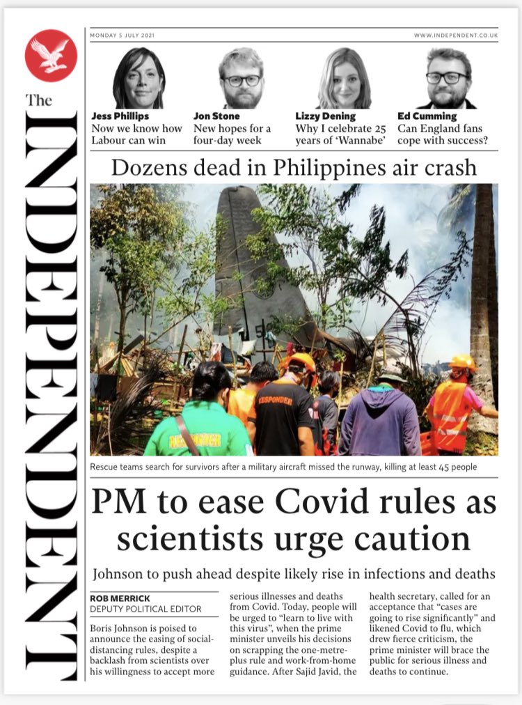 The Guardian reports on the backlash from scientists as the prime minister prepares to lift the last remaining coronavirus restrictions.