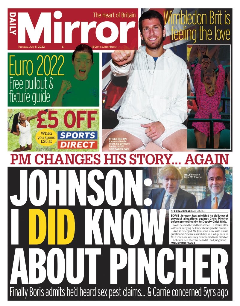 According to the Daily Mirror, the prime minister knew about allegations of inappropriate behavior against Tory MP Chris Pincher before he promoted him to deputy chief whip. It represents a U-turn for Boris Johnson after last week he denied he knew about specific claims.