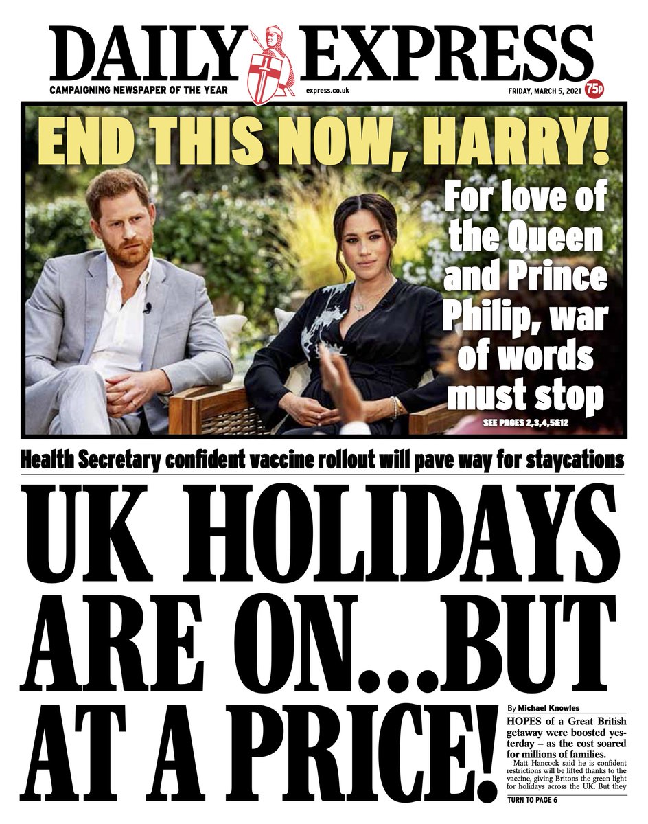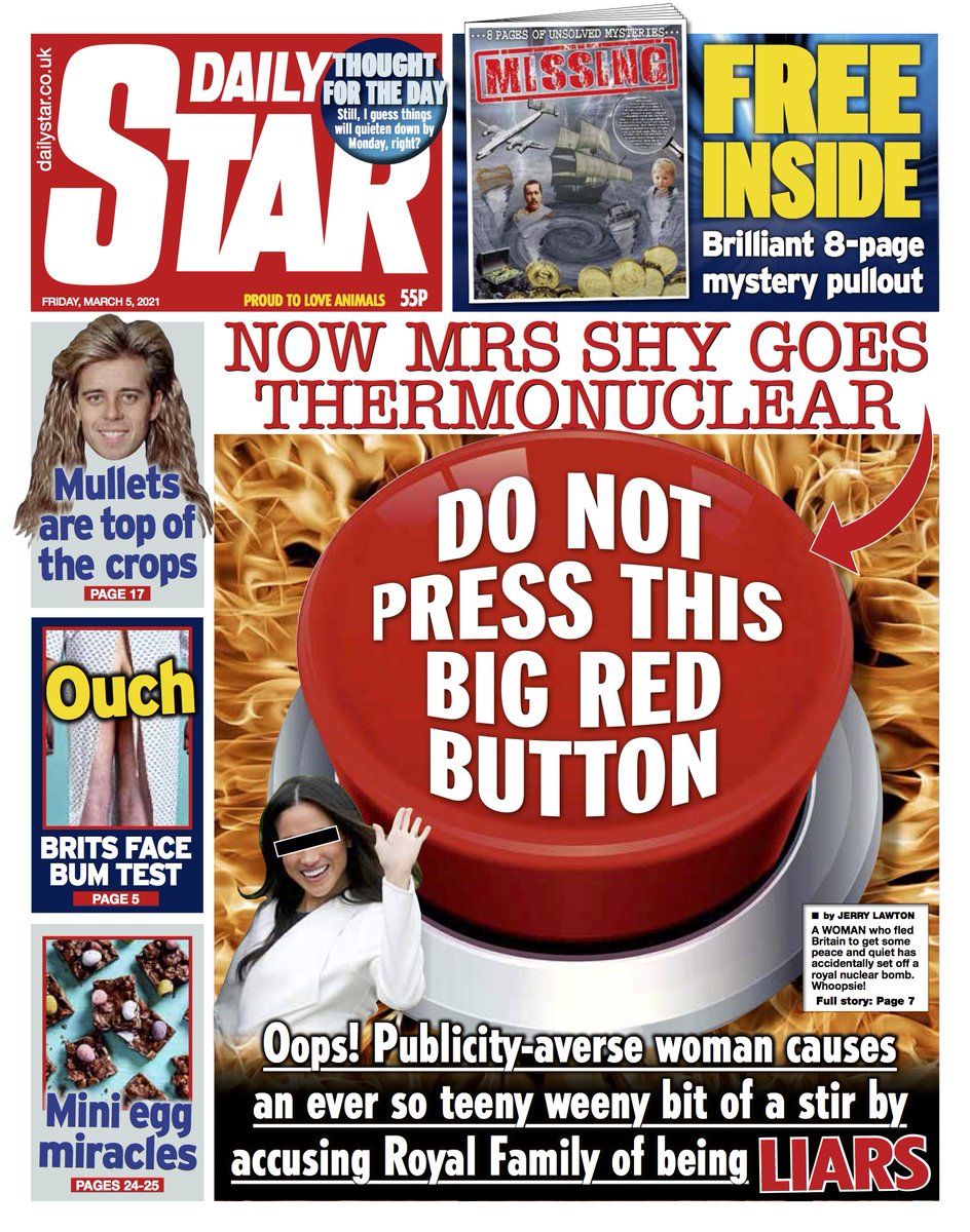 The Daily Star leads on the ongoing row between the Sussexes and the Royal Family, accusing the duchess of courting publicity despite saying she doesn’t want it.