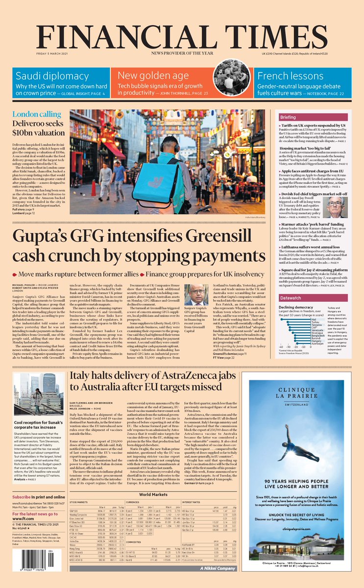 The Financial Times reports that support is being withdrawn from ailing finance group Greenstill Capital.