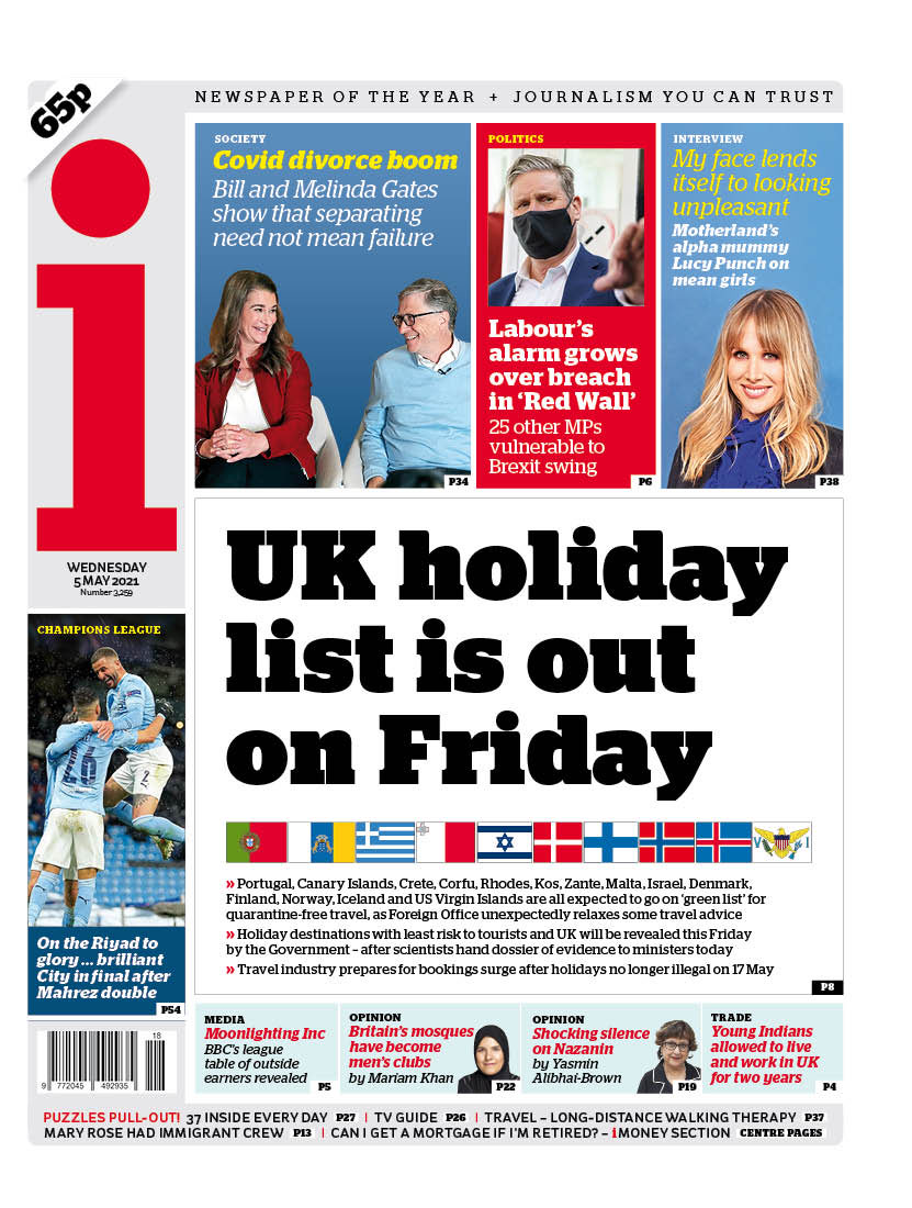 The prime minister is likely to extend a ban on holidays abroad, the i reports.