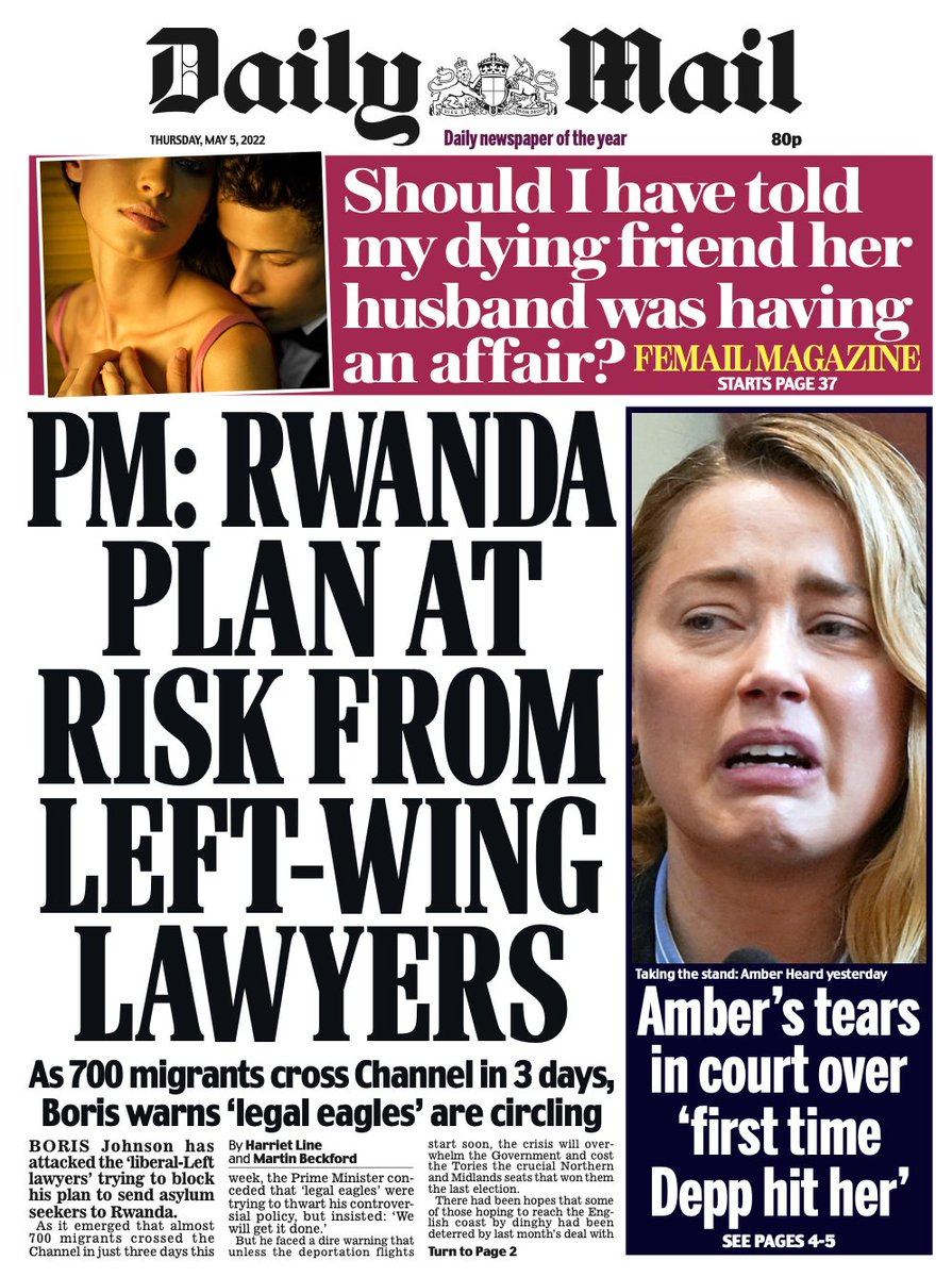 Daily Mail reports that Boris Johnson has attacked the ‘liberal-Left lawyers’ who are trying to stop his plan to send asylum seekers to Rwanda.