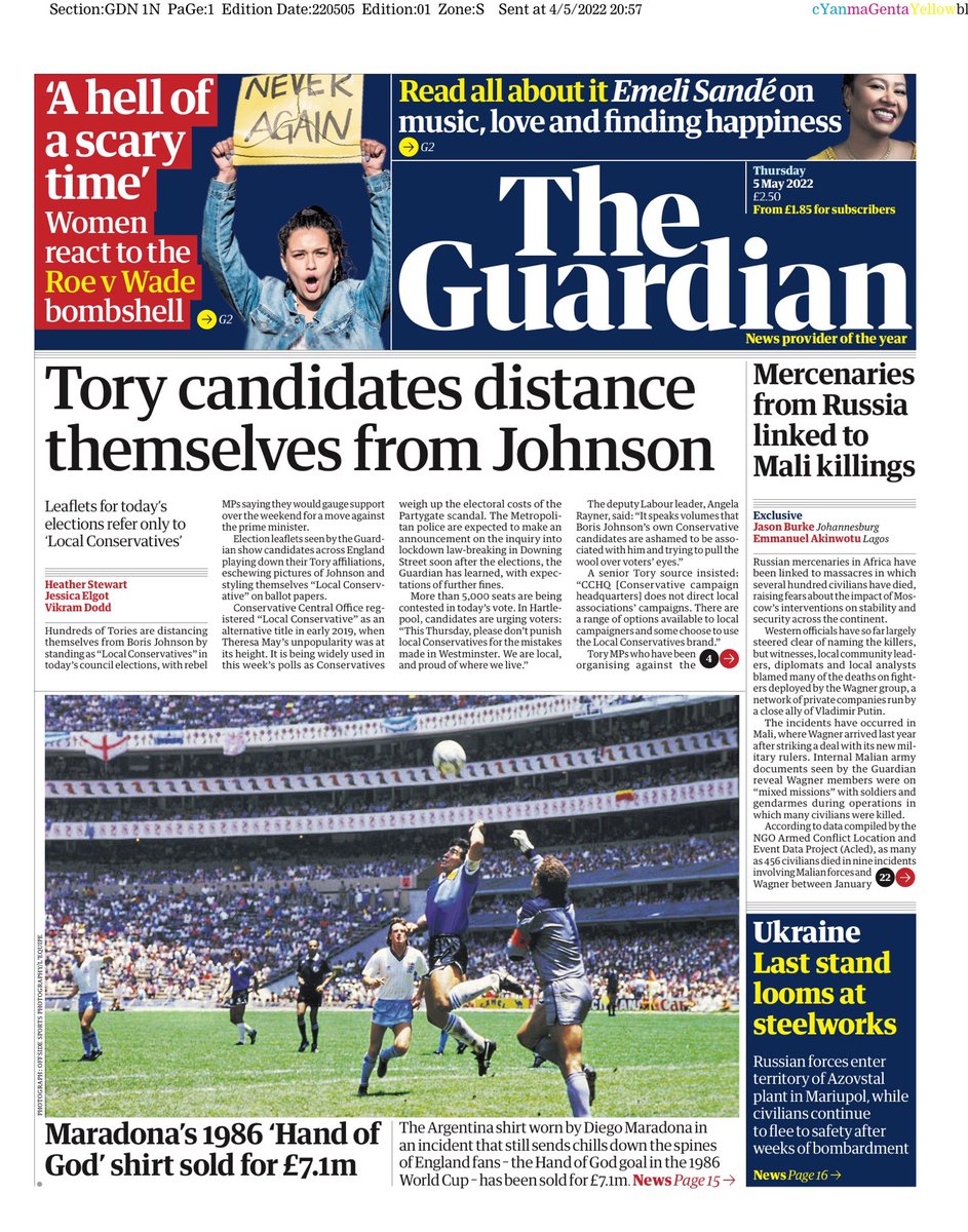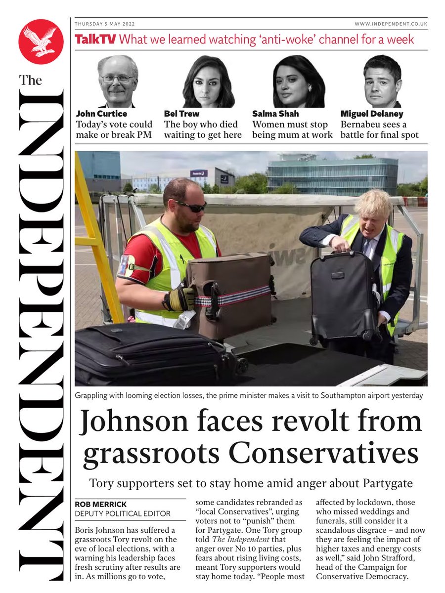 Tomorrow’s council elections will see hundreds of Tories standing as “Local Conservatives” to distance themselves from Boris Johnson, reports The Guardian.