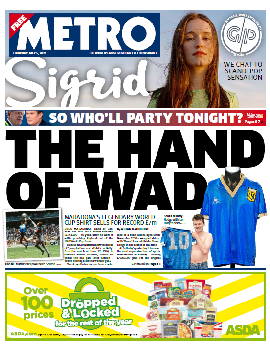 A shirt worn by Diego Maradona, when he scored two of the world’s most memorable goals, has been sold for more than £7 million, according to Metro.