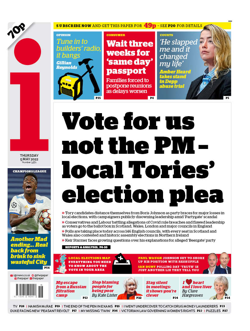 According to the i, candidates for the Conservative party in the local elections are distancing themselves from Boris Johnson.