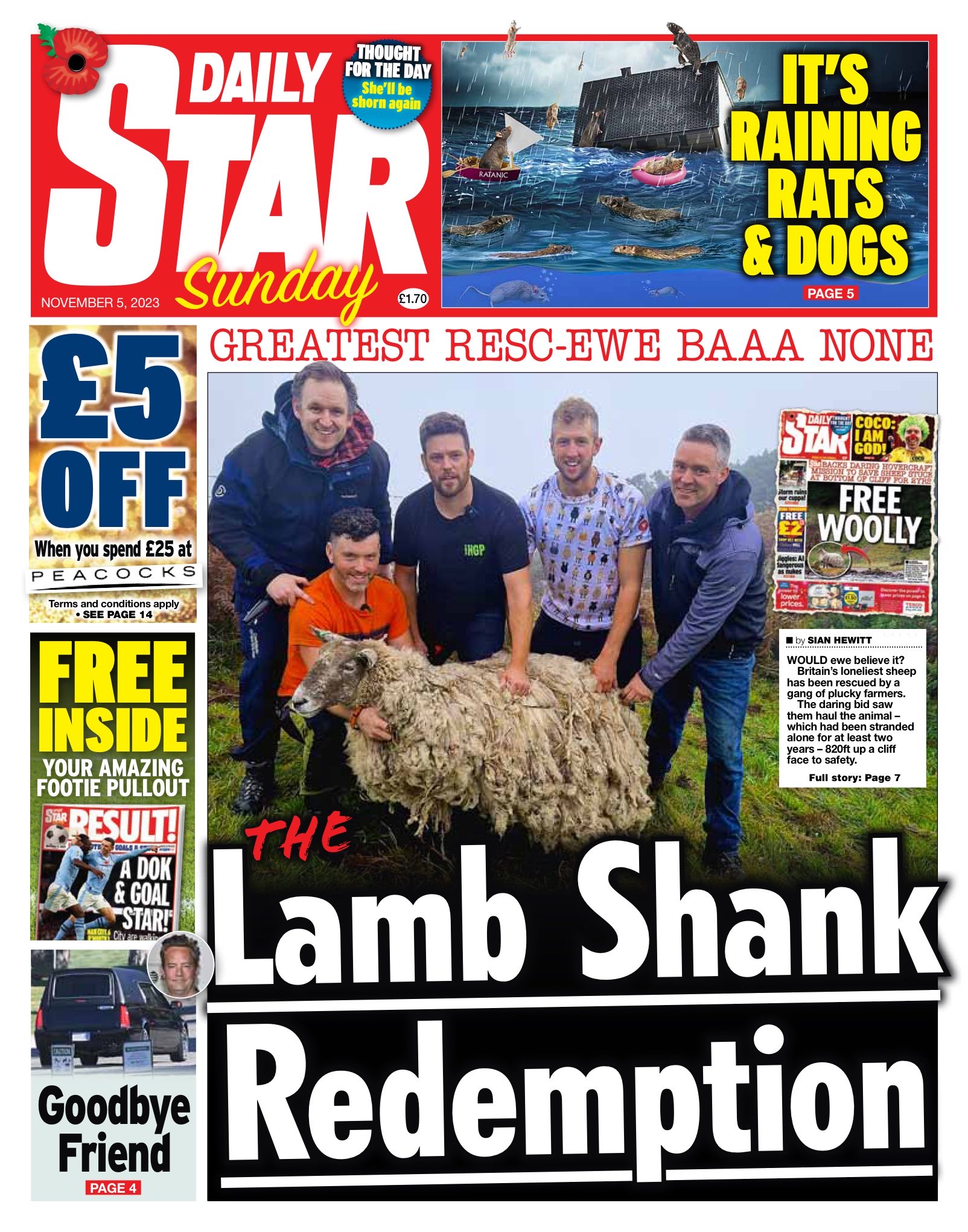 The Daily Star Sunday reports on Britain’s loneliest sheep being saved by farmers.