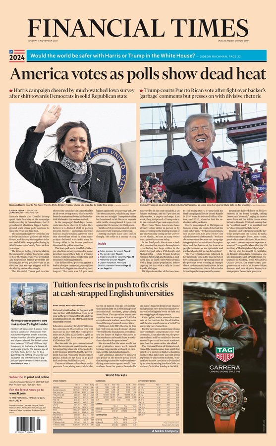 The tightly contested election in the United States sees Kamala Harris leading in key swing states, while Donald Trump encourages his supporters by claiming the race is within their grasp, as global leaders watch closely to understand the potential outcomes.