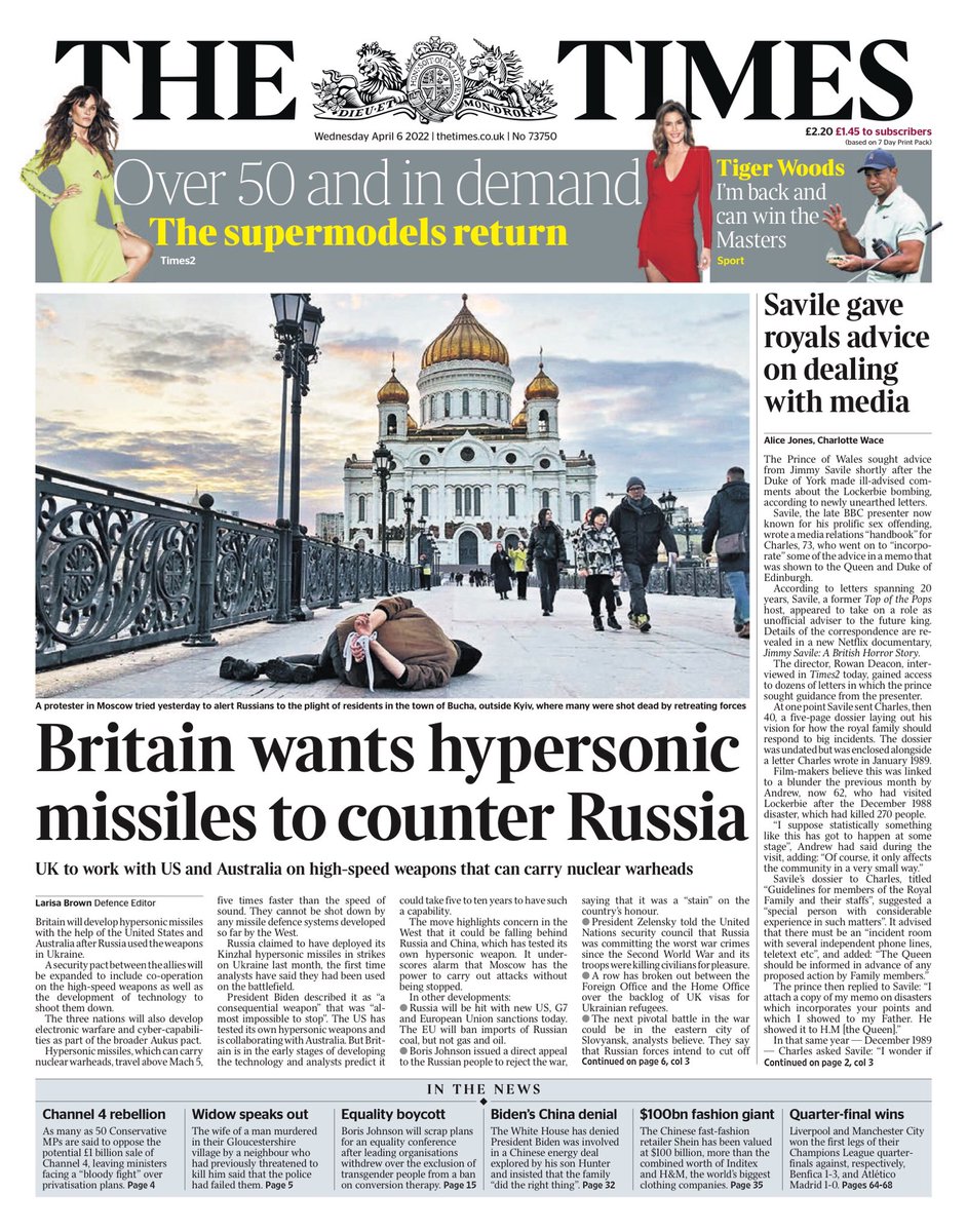 Britain is set to develop hypersonic missiles with the help of the US and Australia, in an attempt to counter Russia, The Times writes. A security pact between the allies will expand co-operation on the high-speed weapons as well as technology to shoot them down.