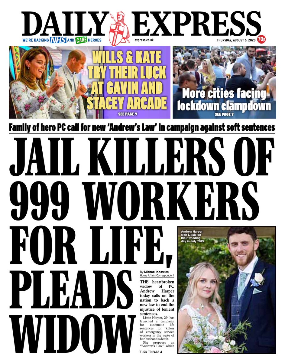 The widow of PC Andrew Harper has called on the country to back a campaign for “Andrew’s Law” to end what she calls the injustice of lenient sentences, according to the Daily Express.
