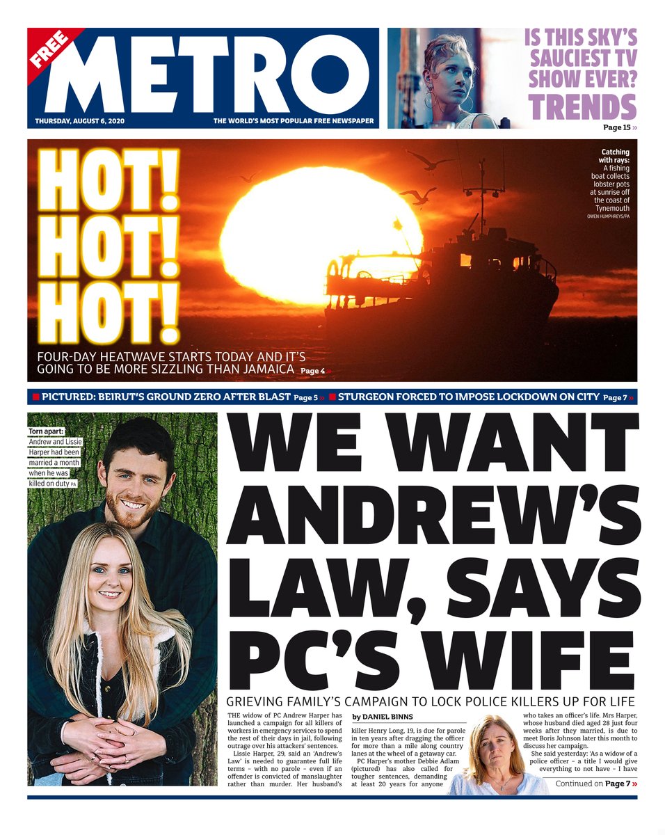 The widow of PC Andrew Harper has launched a campaign for all killers of emergency service workers to get full life terms in jail with no parole, reports Metro.