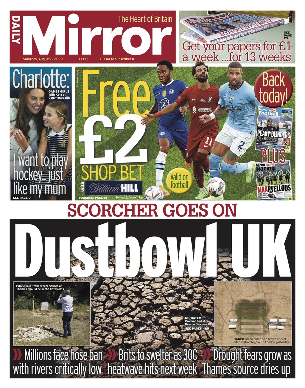 Daily Mirror Front Page 6th of August 2022