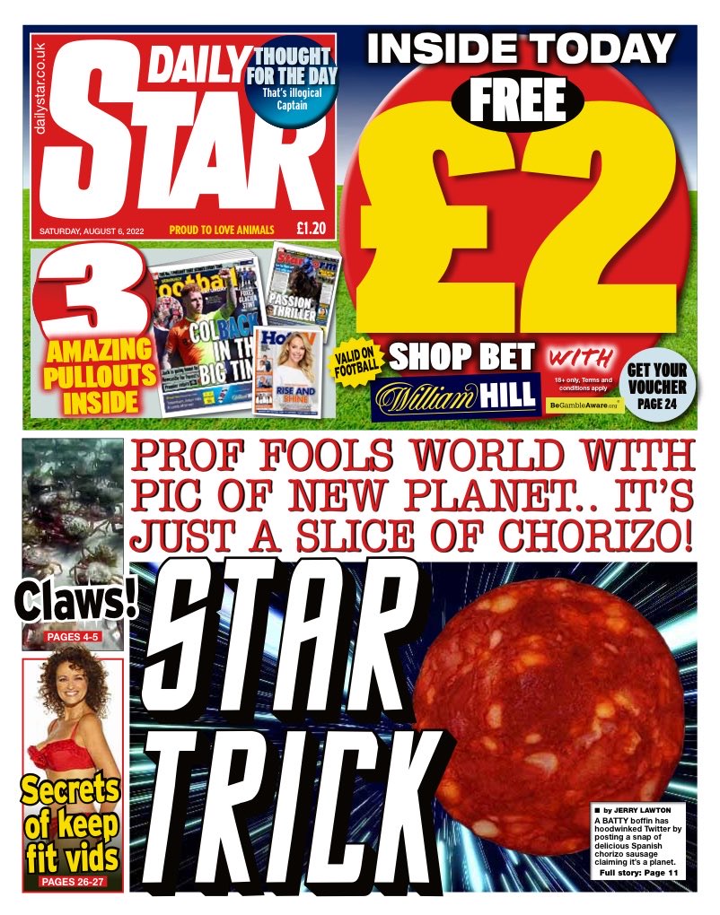 According to the Daily Star, a professor shared a photo of a planet – but it was a picture of chorizo instead.