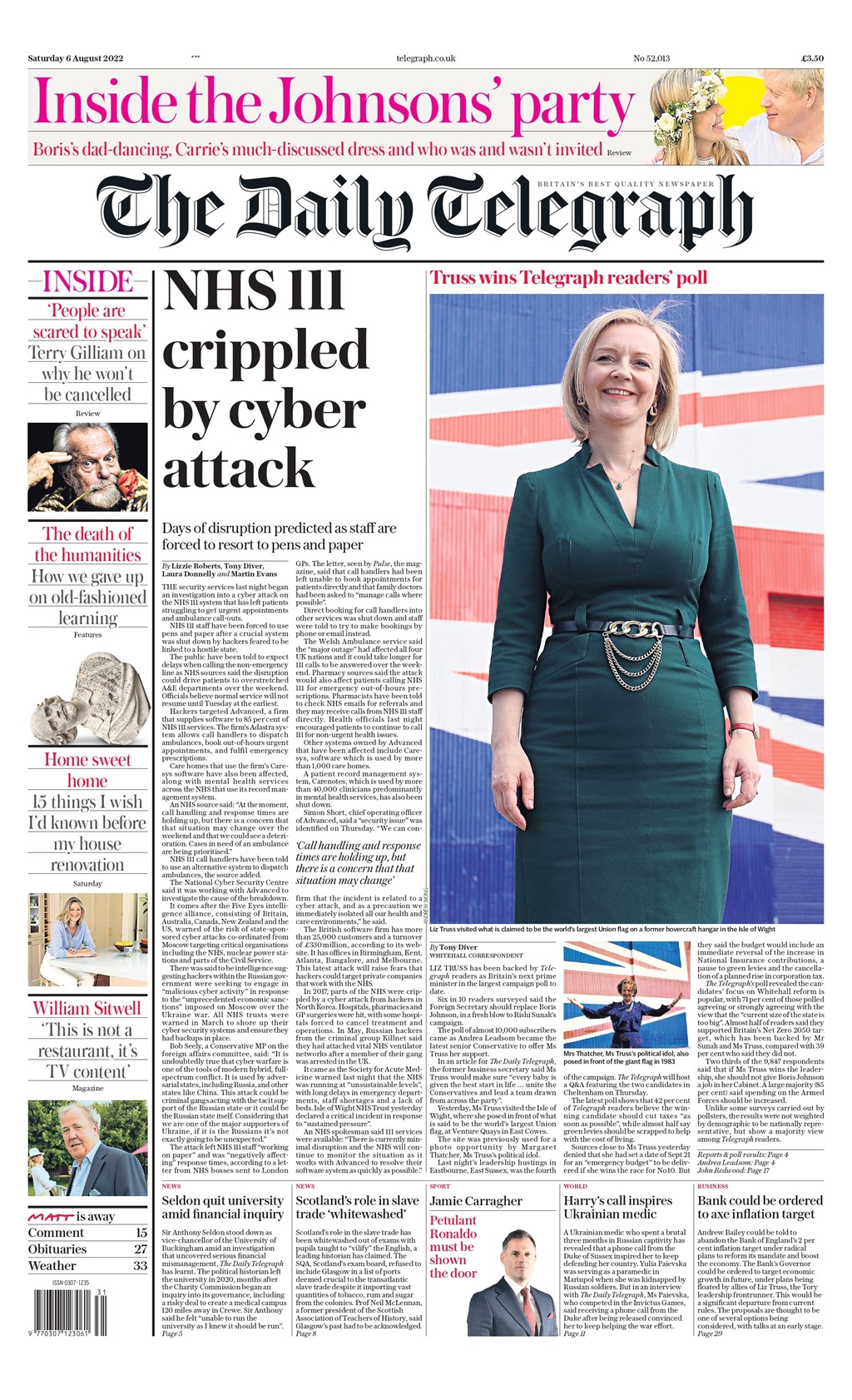 A cyberattack on the NHS’s 111 service has prompted an investigation, according to The Daily Telegraph.