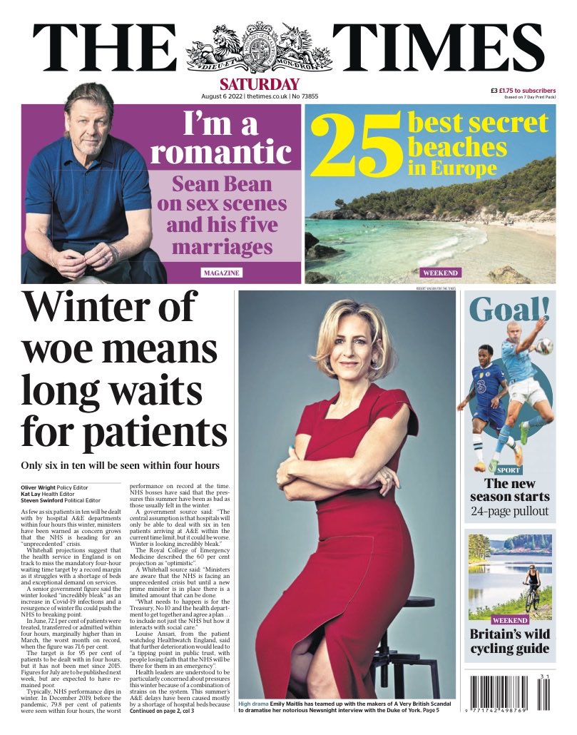 In A&E departments, only six in ten patients will be seen by a medical professional within four hours, according to The Times.