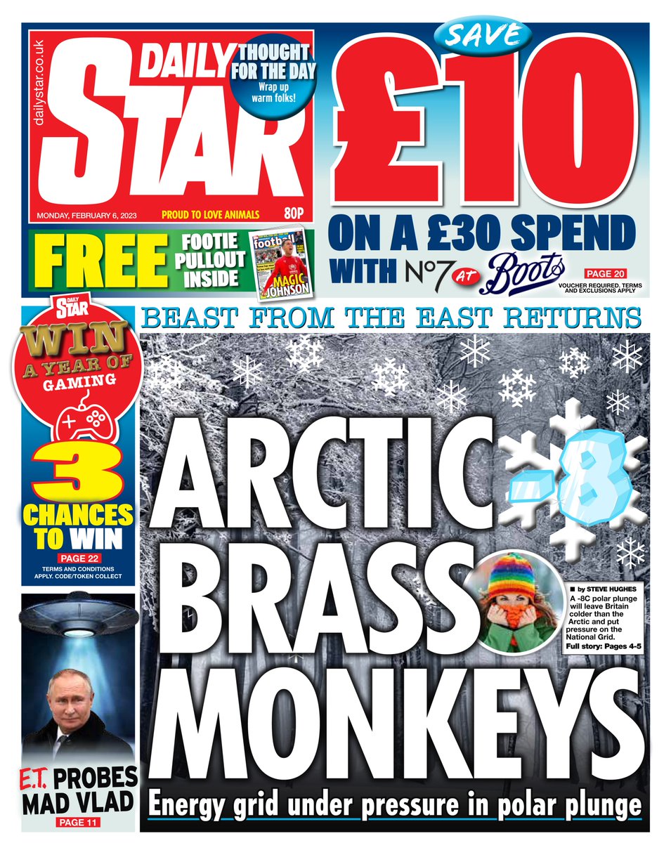 -8C temperatures are threatening to put pressure on the National Grid, according to The Daily Star.