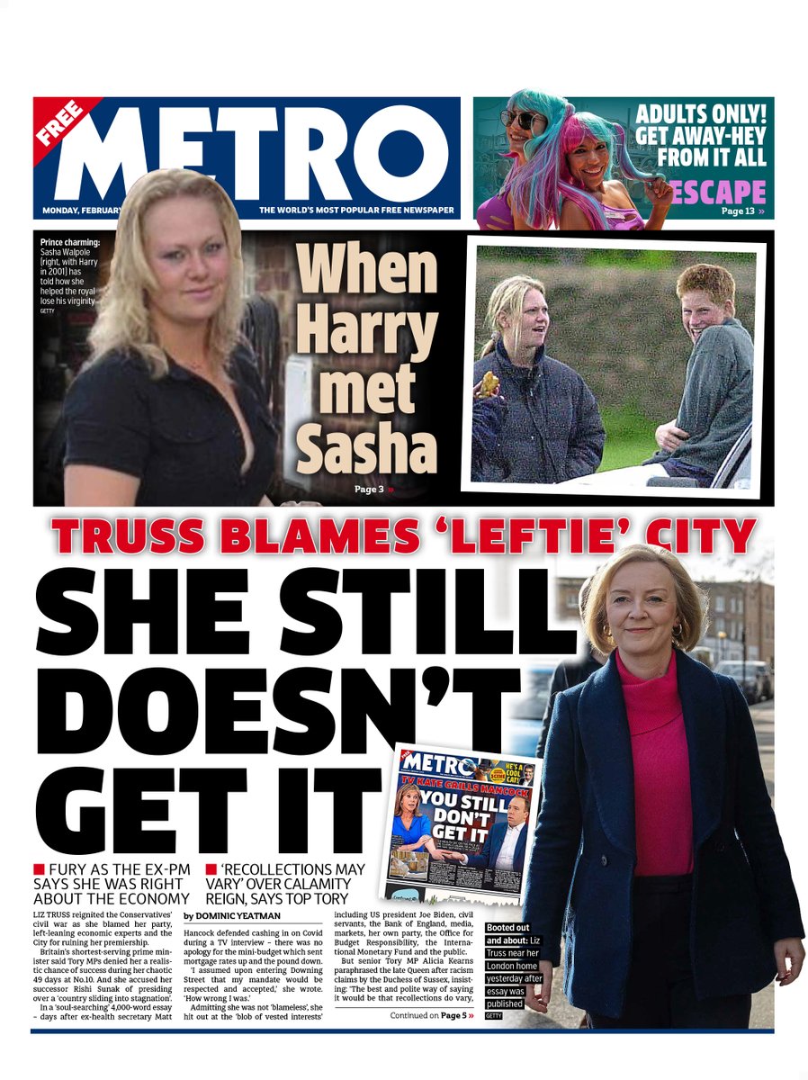 In a piece on Liz Truss’ claim that she was ousted by left-wingers in the economic establishment, The Metro states that Truss “still doesn’t get it”.