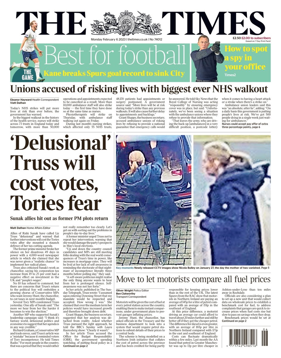 In her first speech since leaving Number 10, Liz Truss will call for a tougher approach towards China, in what the Daily Telegraph calls a “fresh challenge” to Rishi Sunak.