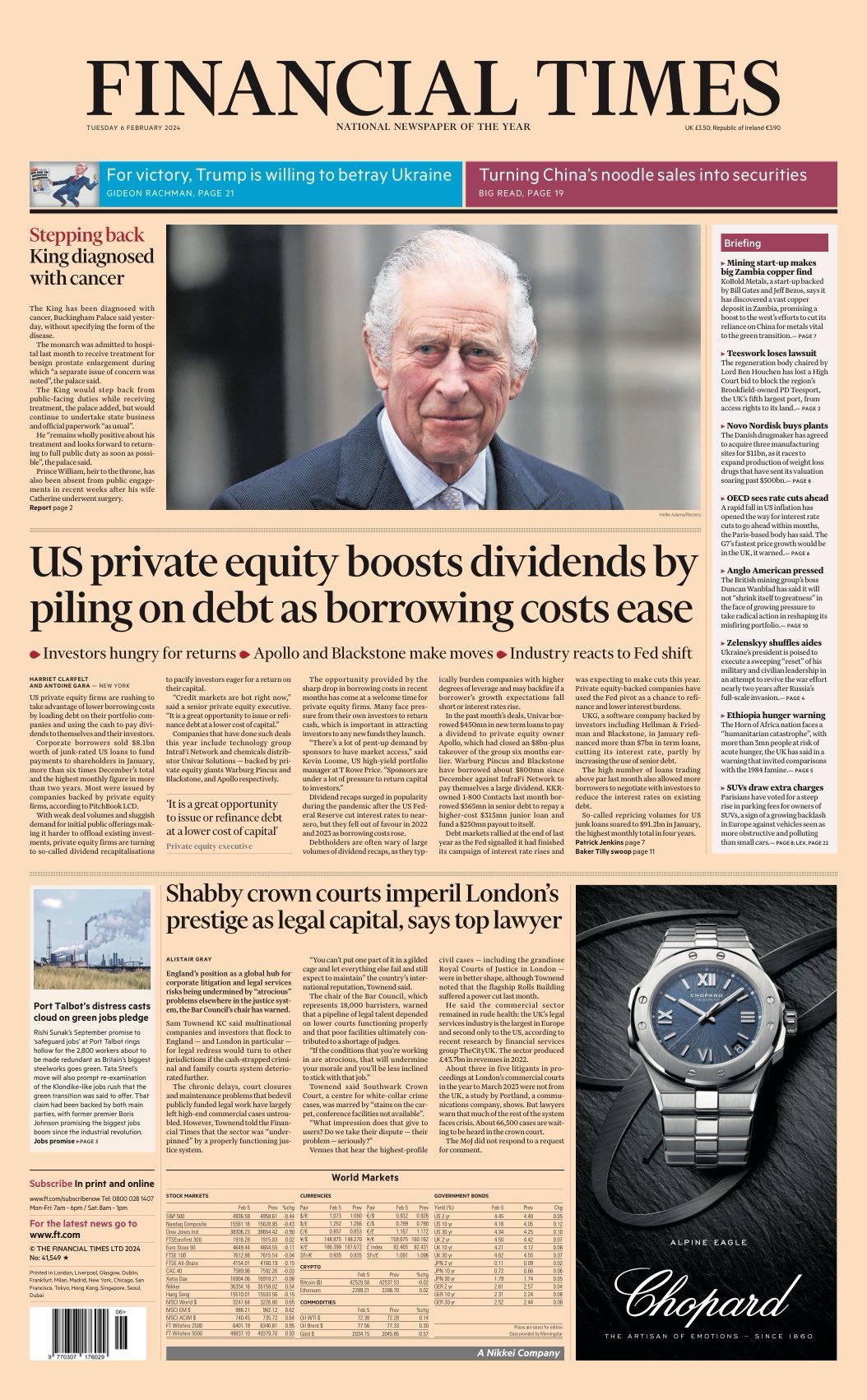 “The Times reports on the King’s cancer diagnosis, as announced by Buckingham Palace.