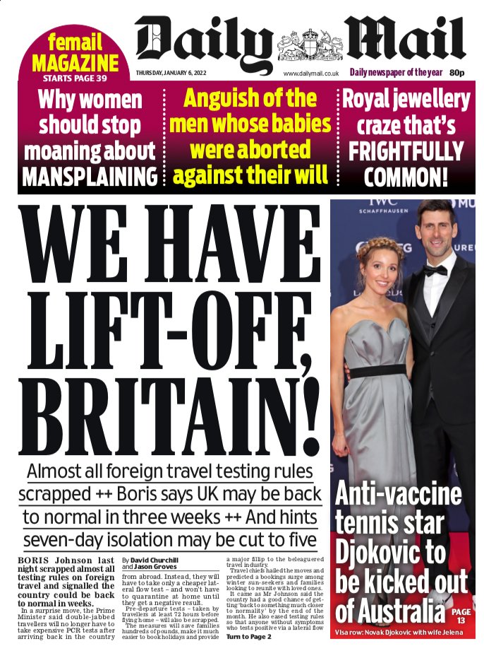 Boris Johnson has signalled the country could be “back to normal in weeks”, according to the Daily Mail, after the government “scrapped almost all testing rules on foreign travel”.