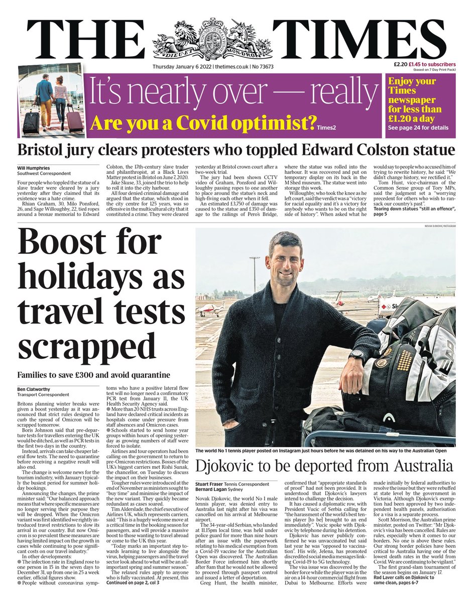 Times Front Page 6th of January 2022