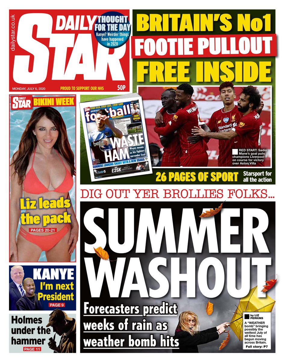 A “weather bomb” bringing possibly the “wettest July of all time has begun moving across Britain”, the Daily Star reports.