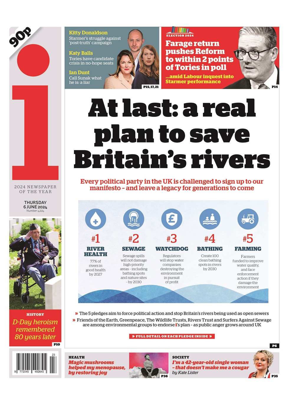The i paper introduces its ‘five pledges’ to incite political action and prevent Britain’s rivers from being used as open sewers.
