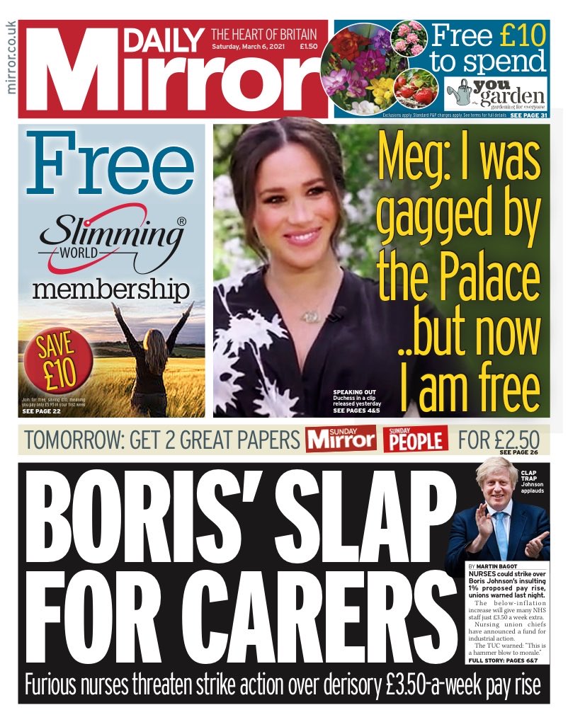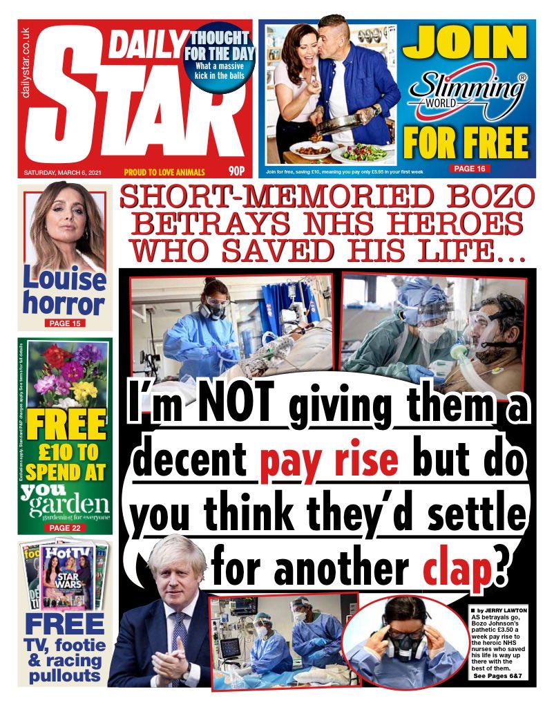 The Daily Star accuses Boris Johnson of “betraying” NHS workers after the government suggested a 1% pay rise.