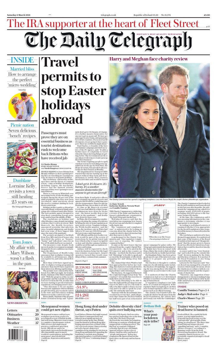 Anyone thinking of an Easter holiday abroad will have their plans scuppered as those trying to leave the UK will have to show a permit proving they are travelling for essential reasons, writes The Daily Telegraph. You can read more on this here.