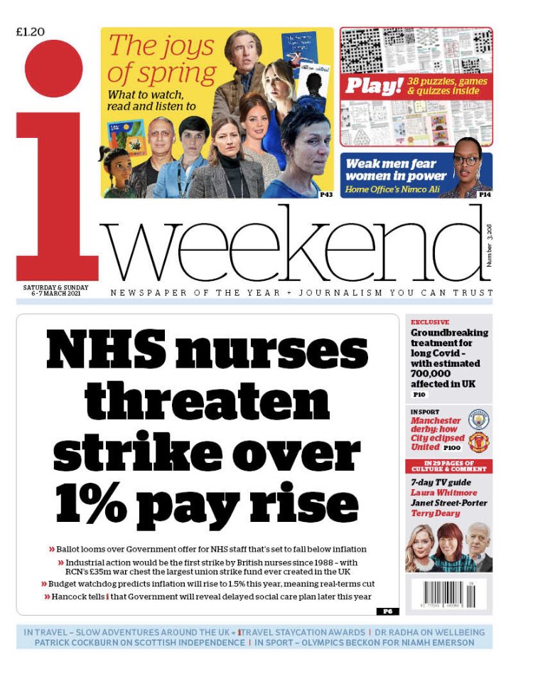 NHS nurses could strike for the first time in the UK since 1988 after the government recommended a 1% pay rise for healthcare workers, according to the i weekend.