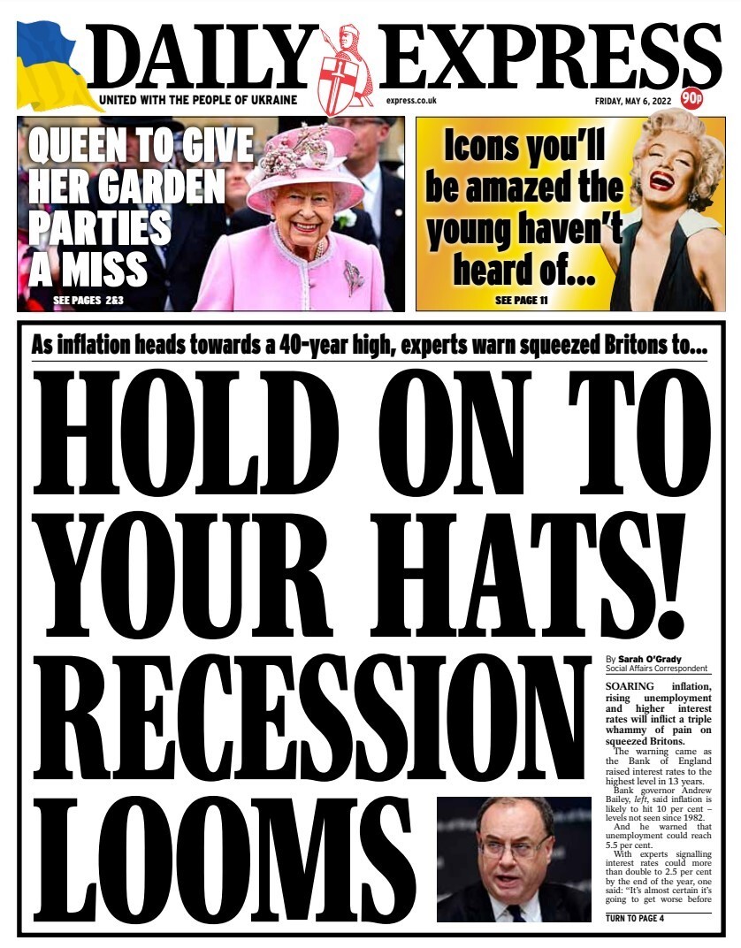 A “triple whammy of pain” for Britons will be inflation, unemployment, and higher interest rates, writes the Daily Express.