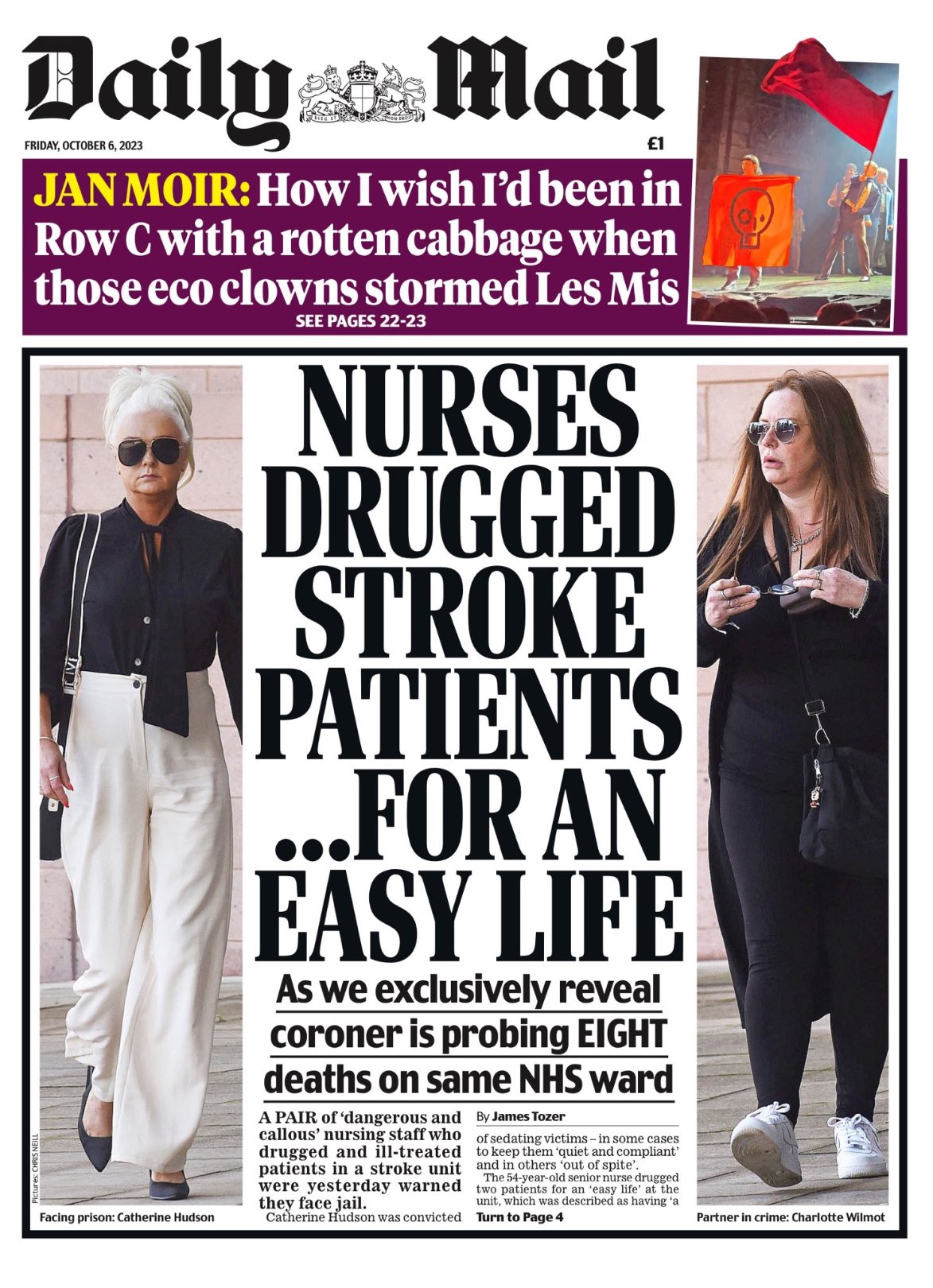 The Daily Mail reports on the impending imprisonment of two reckless nursing staff who drugged and mistreated stroke patients.