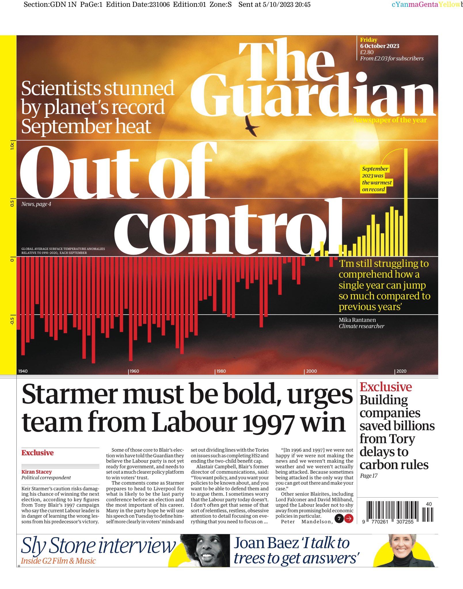 Daily Telegraph Front Page 6th of October 2023