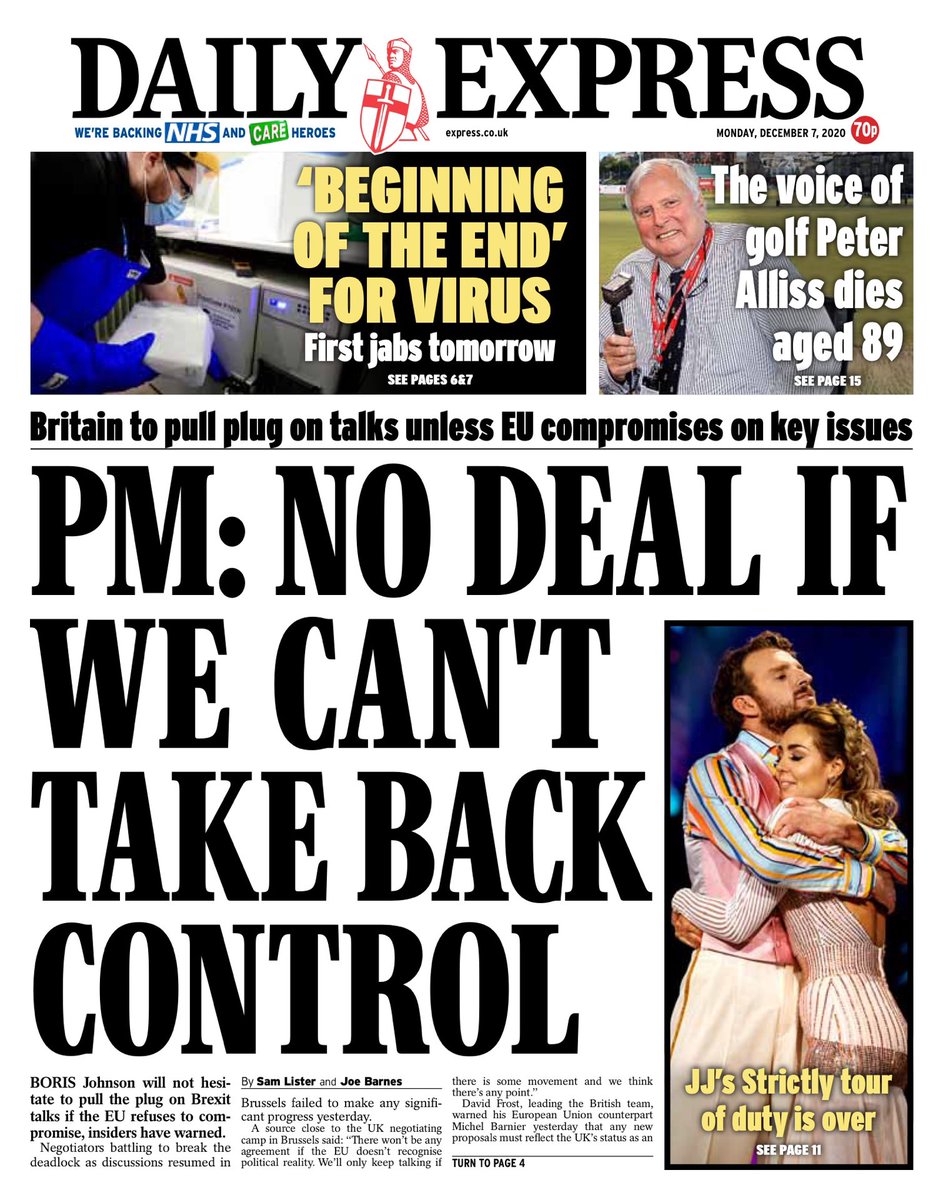 Brexit trade talks failed to make significant progress on Sunday and the UK is prepared to call them off, the Daily Express reports.