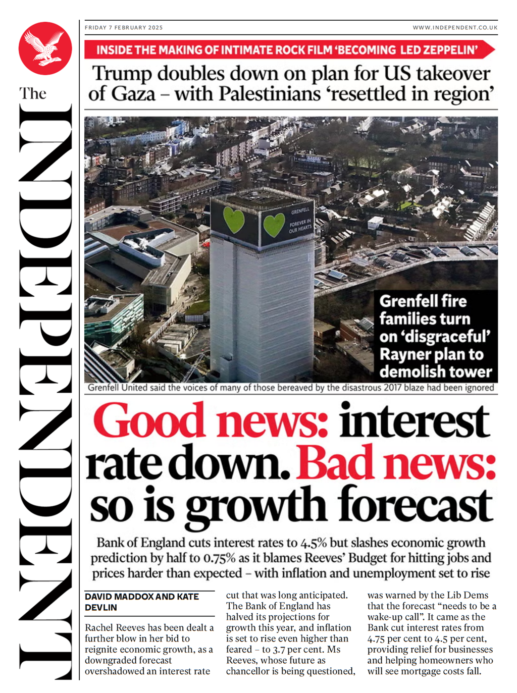 The Bank of England has reduced interest rates to 4.5% but has also cut its economic growth forecast for the year to 0.75%, citing unexpected pressure from inflation and unemployment, putting additional scrutiny on Chancellor Rachel Reeves’ economic strategy.