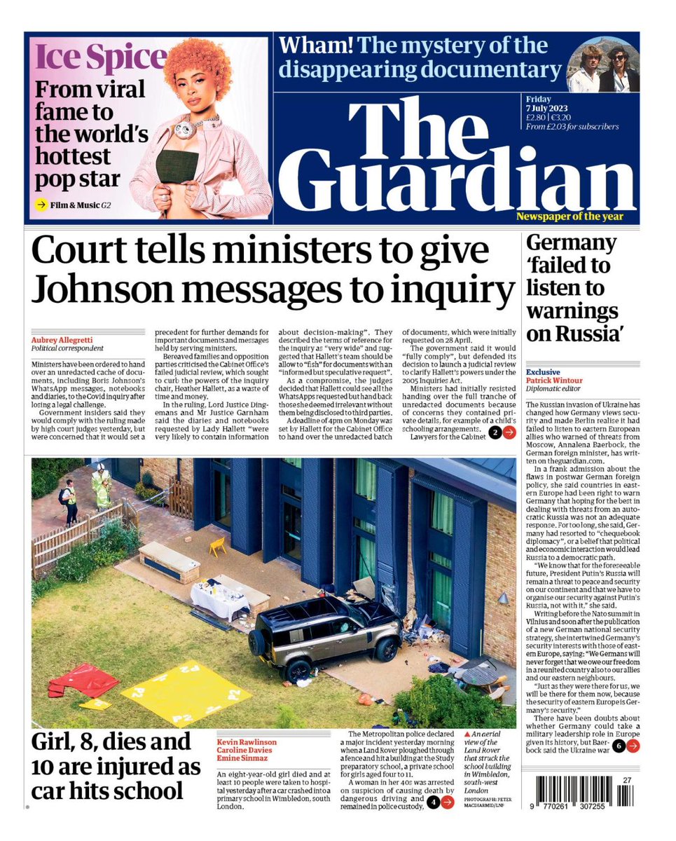 The Guardian reports ministers must supply all documents, including Boris Johnson’s private messages, to the COVID inquiry after a legal loss.
